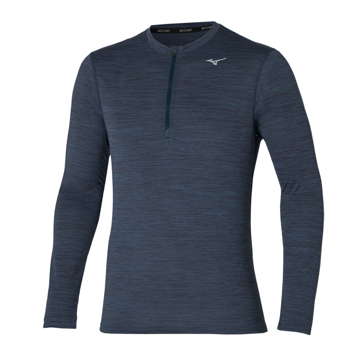Dit Mizuno shirt lange mouw 1/2 zip Impulse Core blue wing teal heren is gemaakt van een zachte dunne functionele stof met hoog ademend vermogen.