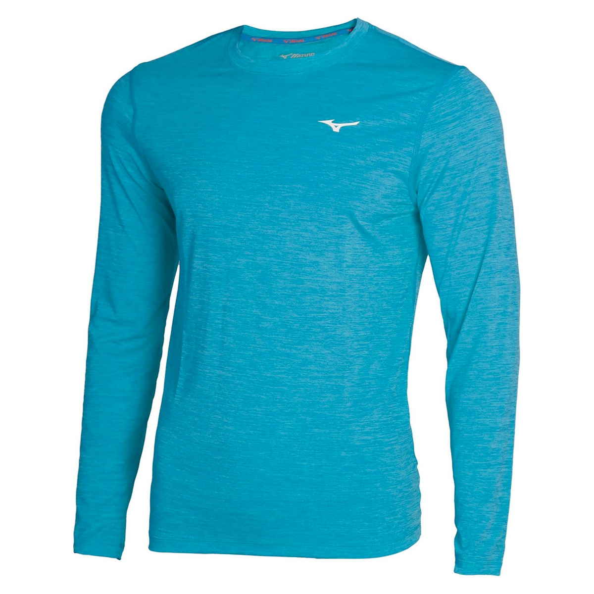 Dit Mizuno shirt lange mouw Impulse Core maui blue voor heren is gemaakt van dun zacht materiaal, met een hoog ademend vermogen. Een sportshirt van Mizuno voor heren die je het hele jaar kunt gebruiken!