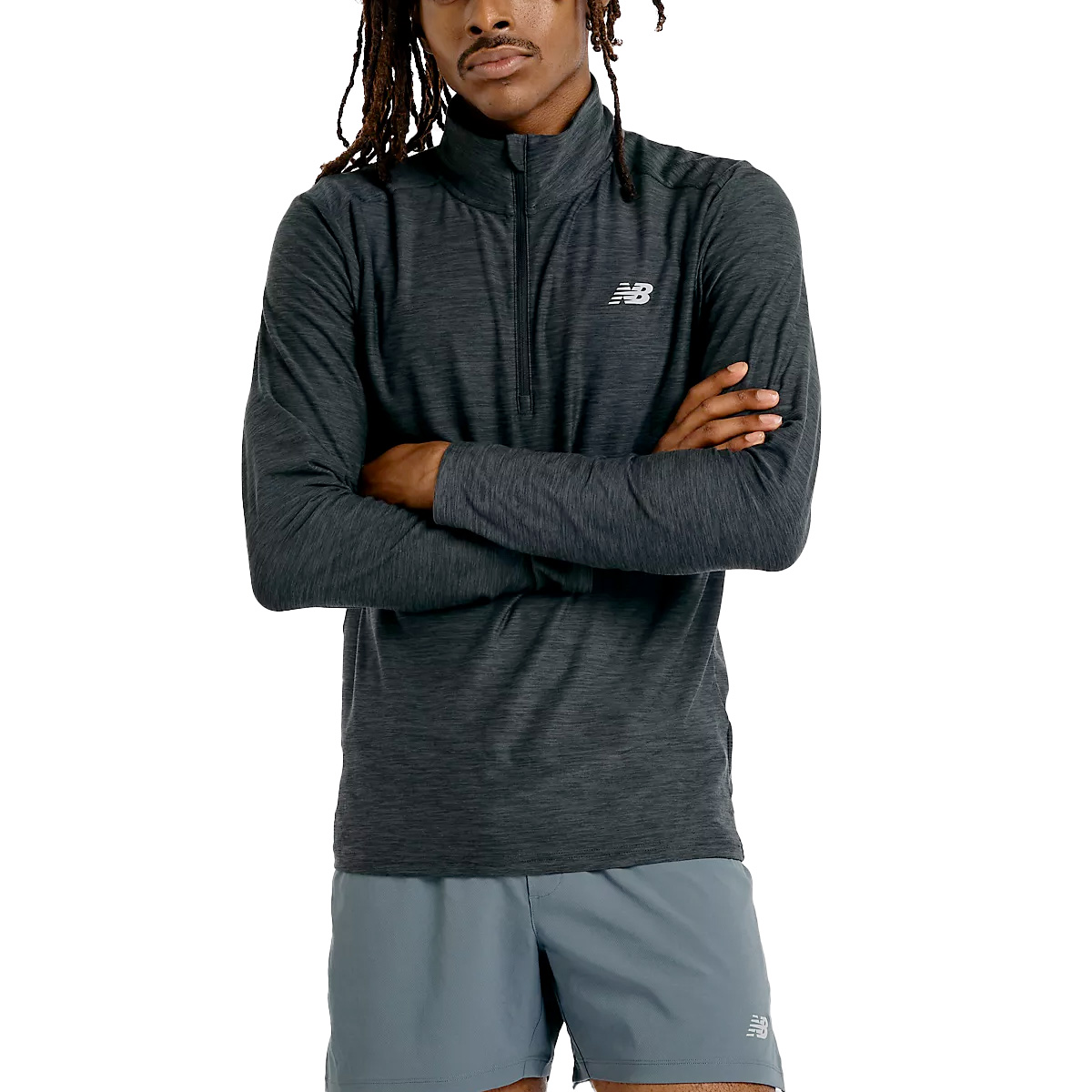 New Balance shirt lange mouw 1/4 zip black heather heren is een hardloopshirt dat snel droogt door NB technologie en gemaakt is van een zachte gerecyclede polyester stof.