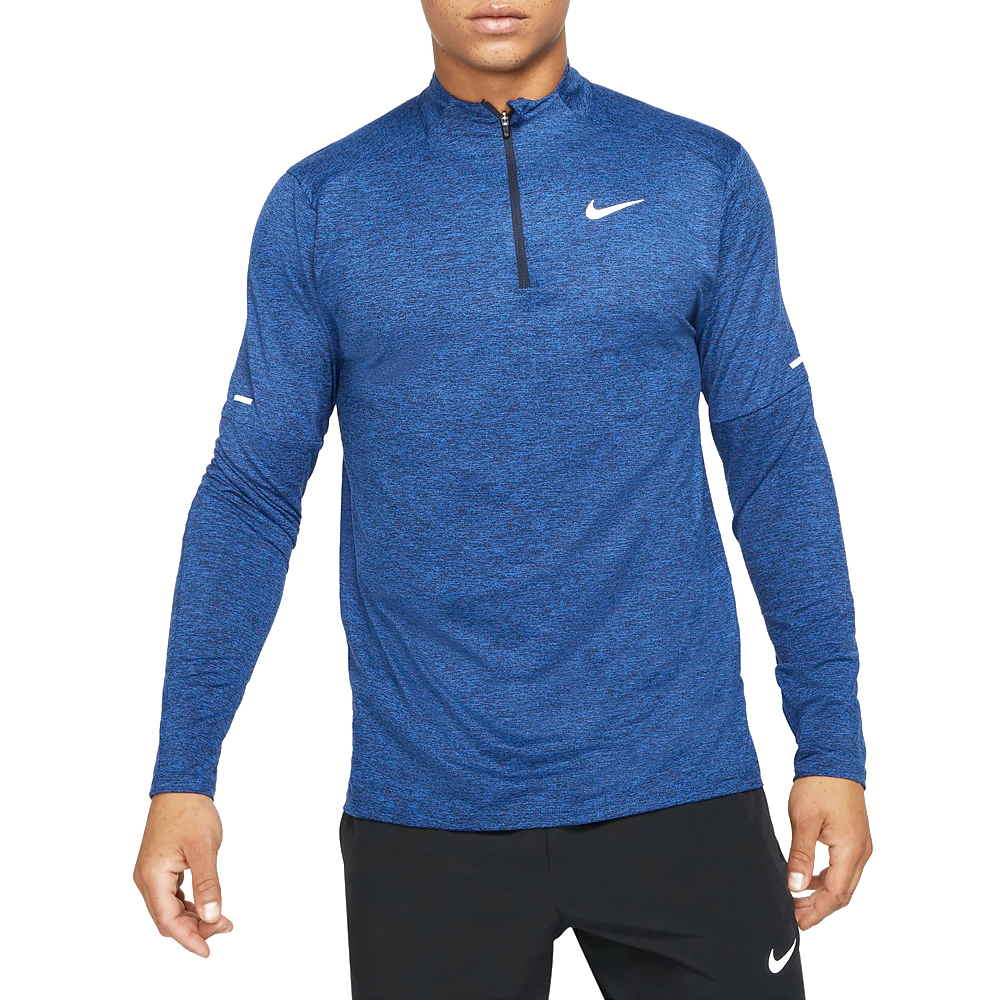 Dit Nike shirt lange mouw 1/2 zip Dri-Fit blue voor heren is gemaakt van zacht, zweetafvoerend materiaal met Dri-Fit technologie waardoor je droog en comfortabel blijft. Het hardloopshirt is voorzien van een halflange rits, en mouwen met duimgaten zodat je handen warm blijven. Door de reflecterende details ben je goed zichtbaar in het donker.