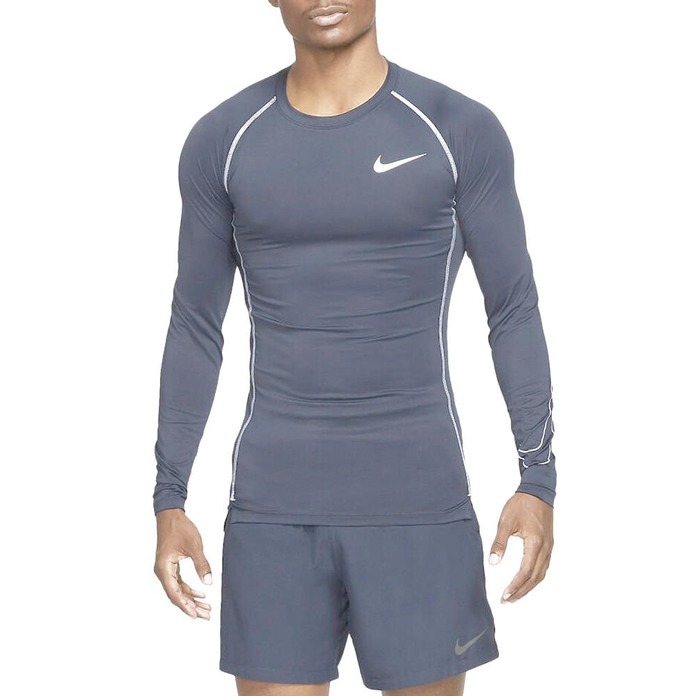 Dit Nike shirt lange mouw Pro navy heren houdt je koel en droog tijdens het sporten. Een lichtgewicht sportshirt met strakke fit wat je makkelijk onder een hardloopjas of als thermo ondergoed kunt dragen. Het elastische materiaal is gemaakt met minstens 75% gerecyclede polyestervezels