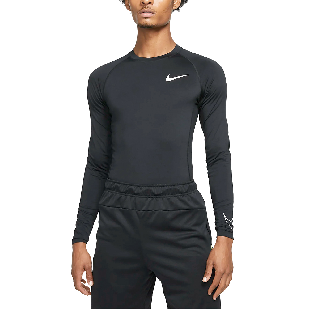Dit Nike shirt lange mouw Pro black/white voor heren houdt je koel en droog tijdens het sporten. Een lichtgewicht sportshirt met strakke fit wat je makkelijk onder een hardloopjas of als thermo ondergoed kan dragen. Het elastische materiaal is gemaakt met minstens 75% gerecyclede polyestervezels