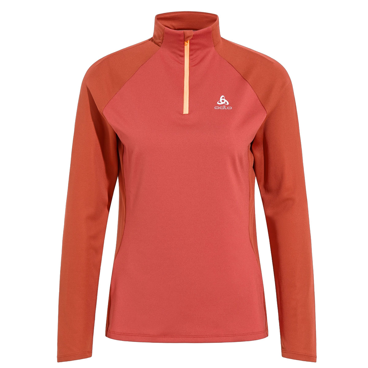 Dit Odlo shirt lange mouw 1/2 zip shirt Ceramiwarm cinnabar voor dames heeft uitstekende vochtregulering en bewegingsvrijheid. Het houdt je warm tijdens de koude winterdagen en met de reflecterende details ben je beter zichtbaar in het donker.