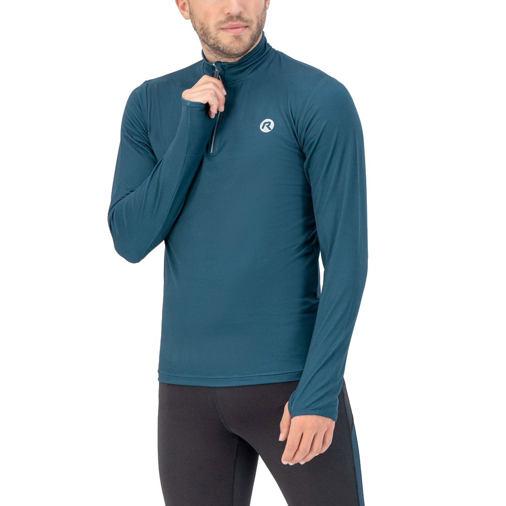 Dit Rogelli shirt lange mouw 1/2 zip Core blue voor heren is gemaakt van Intex Flex 180 stof, beschikt over ademend vermogen voor voldoende ventilatie en voelt zacht aan. Dit loopshirt heeft een korte rits en een duim-gat in de mouw. De reflecterende details zorgen voor extra zichtbaarheid in het donker.