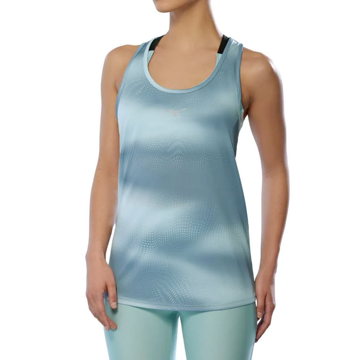 Mizuno singlet sleeveless Core Graphic (Skylight) dames is gemaakt met drylite technologie. De zachte stof en het functionele design voeren zweet en warmte snel af naar buiten. Zo blijf je droog en comfortabel bij hardlopen in de warmte.