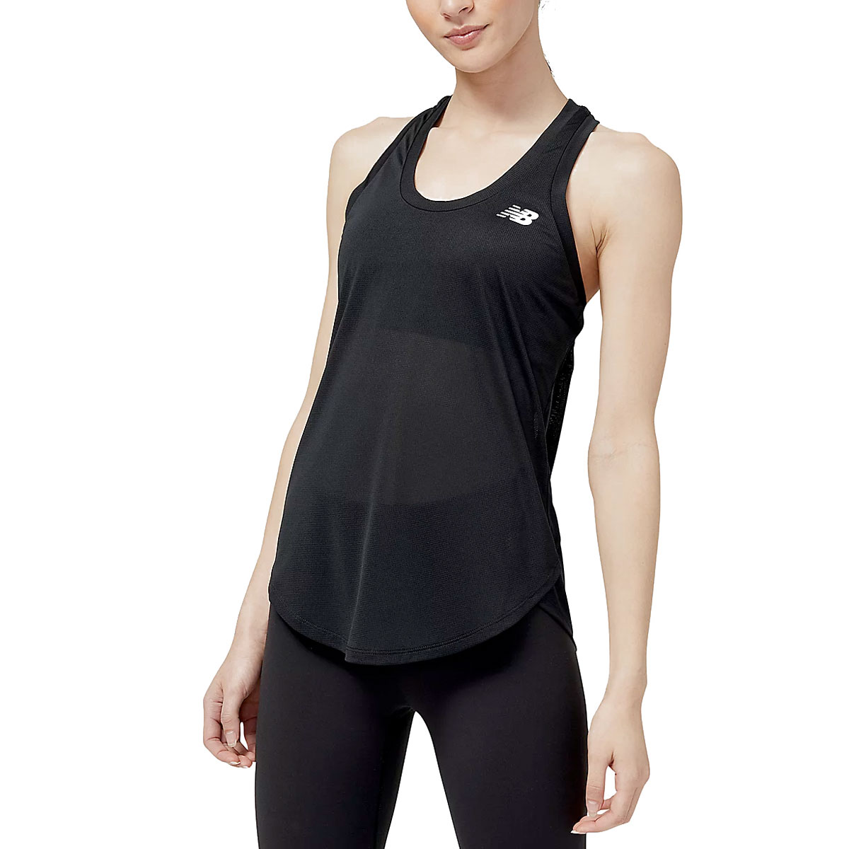 New Balance singlet Accelerate black voor de dames houdt je droog en comfortabel tijdens je training. Deze hardloopsinglet is gemaakt van een lichtgewicht en ademende gerecyclede polyester stof. De NB Dry technologie zorgt er voor dat het vocht snel wordt afgevoerd.