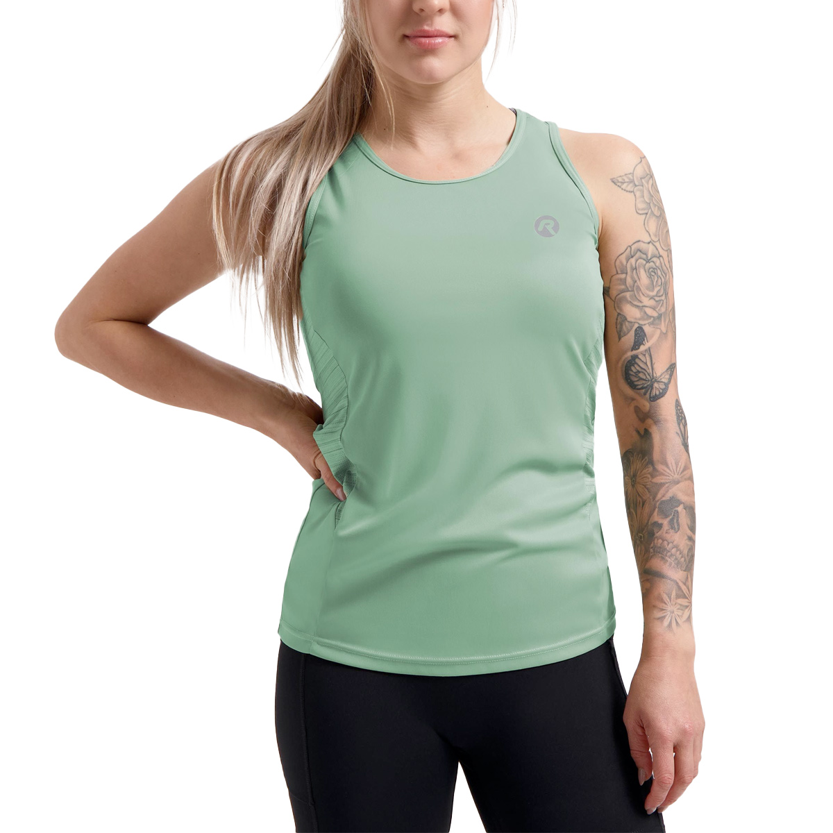Rogelli singlet (Mint) dames is gemaakt van een gladde stof, met een ademende stof op de rug wat zorgt voor goede ventilatie. De reflecterende details zorgen ervoor dat je goed zichtbaar blijft in het donker.