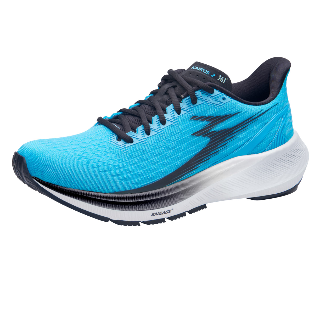 361 Kairos 2 heren Aqua/Black is een stabiele comfortabele antipronatie hardloopschoen, speciaal ontworpen voor lopers die lichte overpronatie willen tegengaan. Dankzij de combinatie van het vernieuwde ENGAGE foam en nieuwe platvorm geometrie heeft 361° gezorgd voor een gebalanceerde unieke loopervaring.
