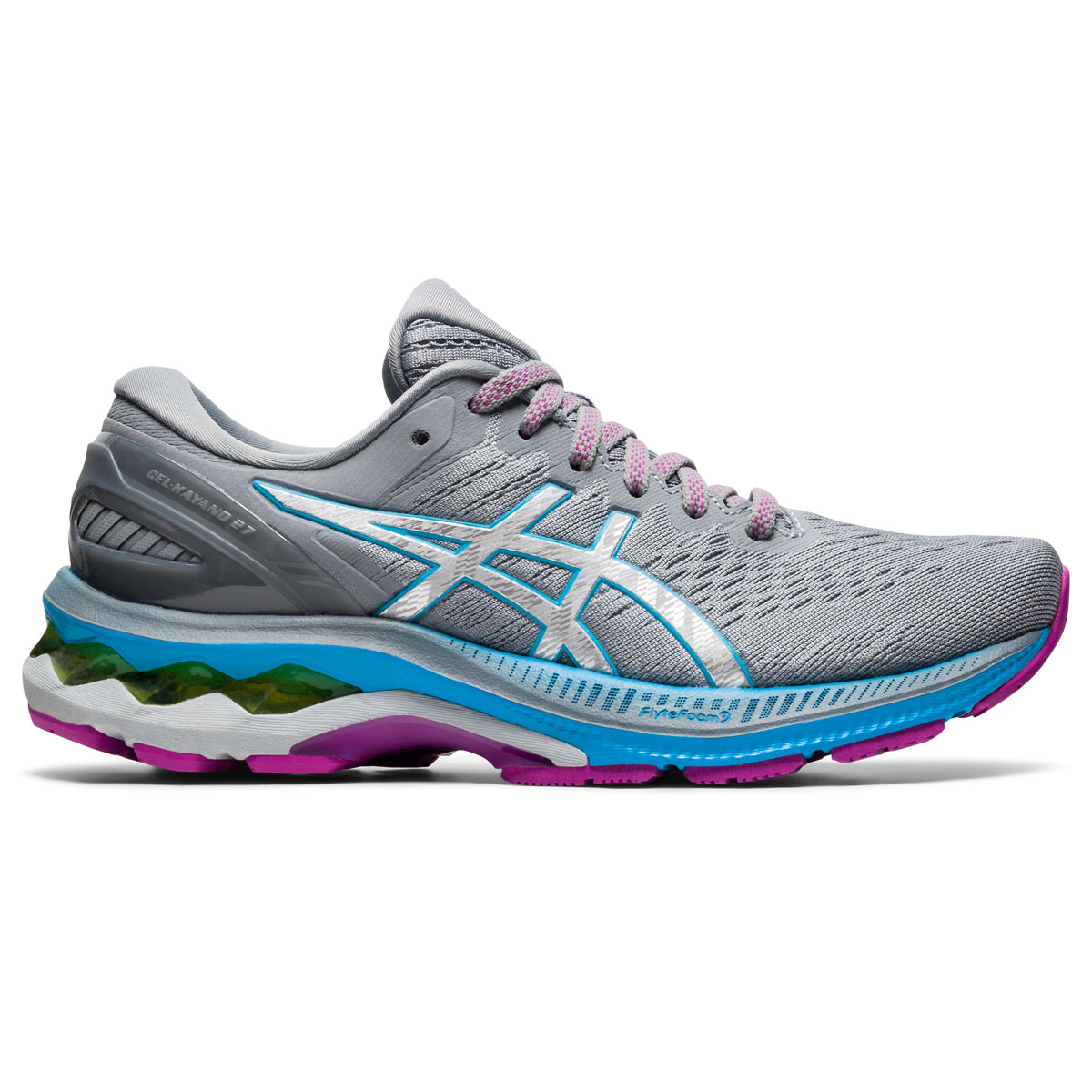 De ASICS Gel Kayano 27 digital aqua/pure dames is een toplevel hardloopschoen voor de hardloopster die overproneert.