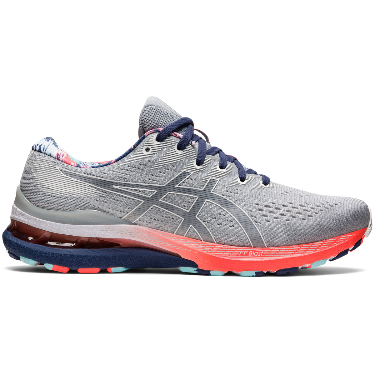 De ASICS Gel Kayano 28 piedmont grey/thunder blue heren is een toplevel hardloopschoen voor de hardloper die overproneert.