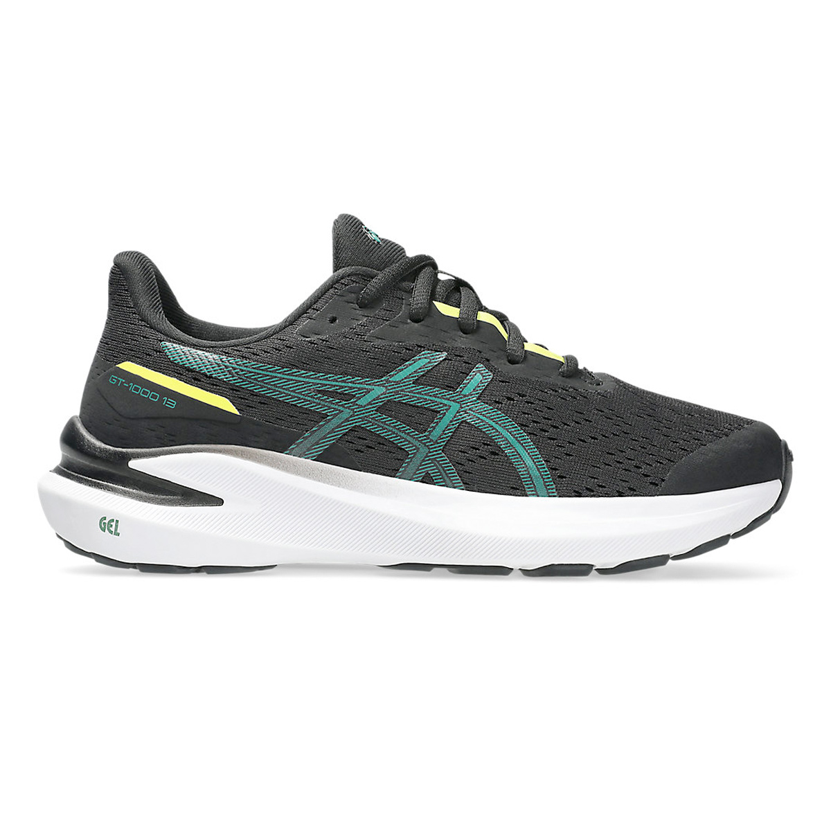 Asics GT-1000 13 (Black/Jasper Green) kinder hardloopschoen de allround comfortabele hardloopschoen voor actieve kids. Nieuwste versie met verbeterde demping en hierdoor comfortabeler en energiekere schoen. Geschikt voor overpronatie maar ook zeker voor de neutrale lopers. Speciaal ontworpen voor actieve kids die willen rennen, springen en gewoon lekker bewegen.