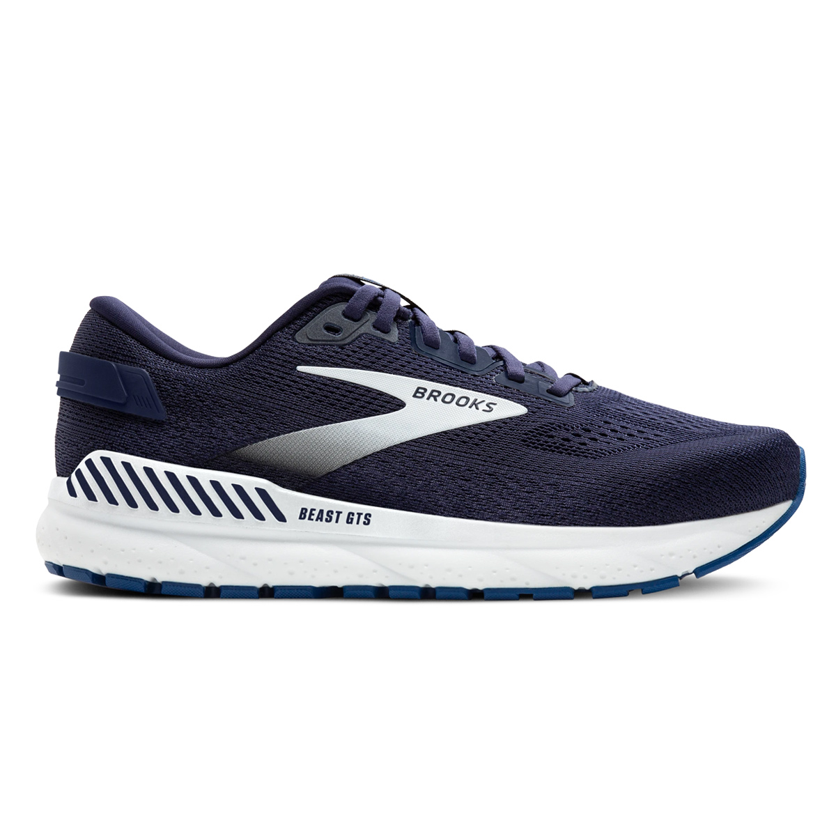 Brooks Beast GTS 24 (Peacoat/True Navy/White) 2E WIDE leest heren, allround antipronantie hardloopschoenen bieden de maximale ondersteuning bij overproneren en prettig comfort geschikt voor de zwaardere loper. Ook te gebruiken als wandelschoen!