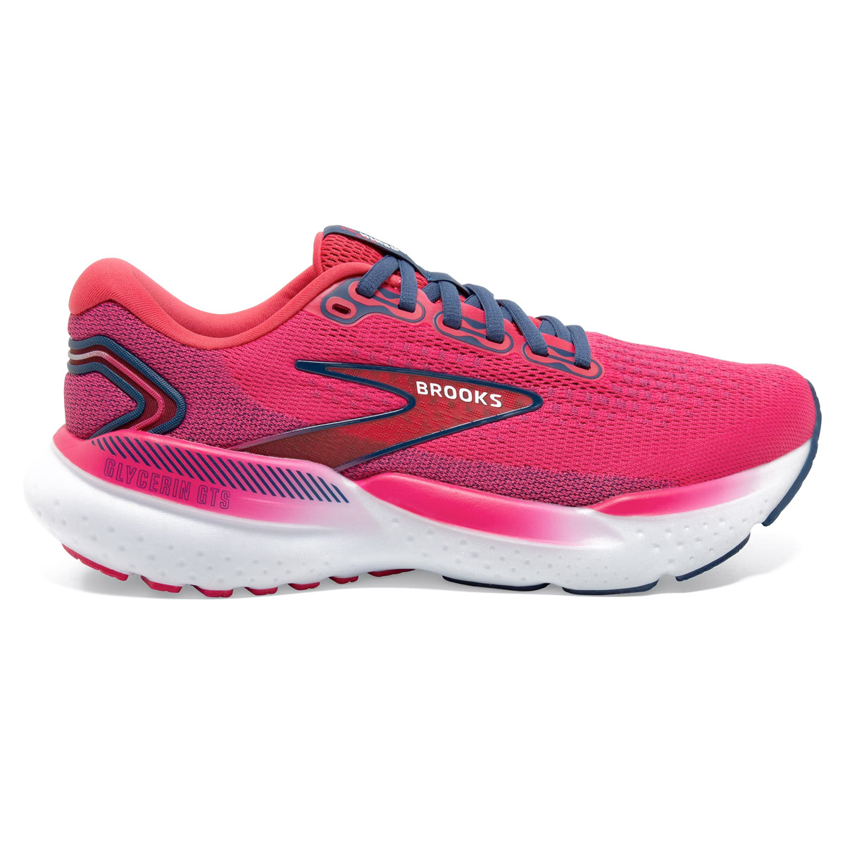 Brooks Glycerin GTS 21 raspberry/estate blue dames is één van de betere antipronatie loopschoenen met ongekend veel comfort, extra 2 mm demping toegevoegd en betrouwbare ondersteuning voor overproneerders.