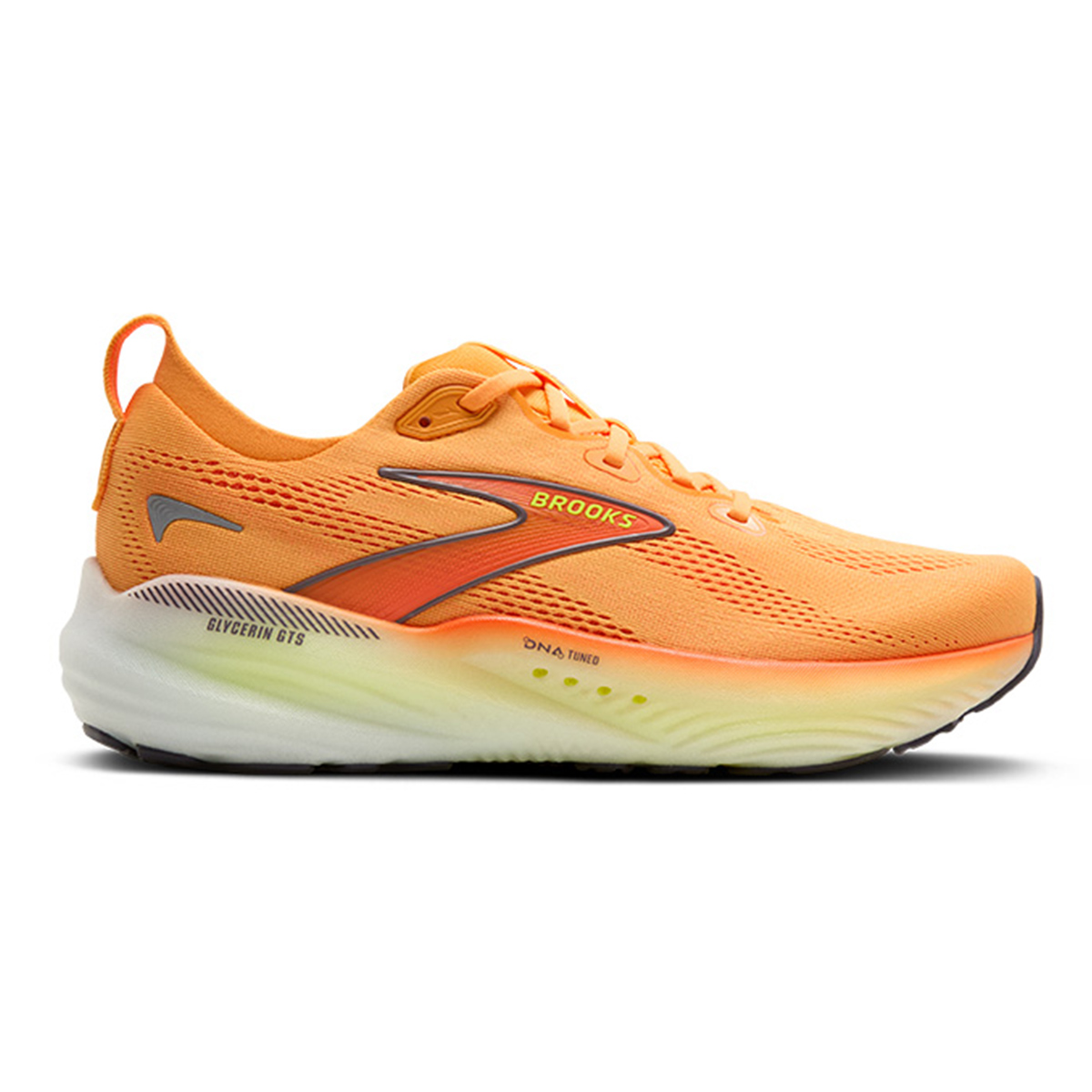 Brooks Glycerin GTS 22 (Orange/Nightlife/White) heren is één van de meest comfortabele antipronatie loopschoenen met ongekende demping van dit moment. Met een vernieuwde tussenzool voorzien van DNA TUNED schuim, dé nieuwe generatie op stikstofinfusie gebaseerd en met dubbele celtechnologie.