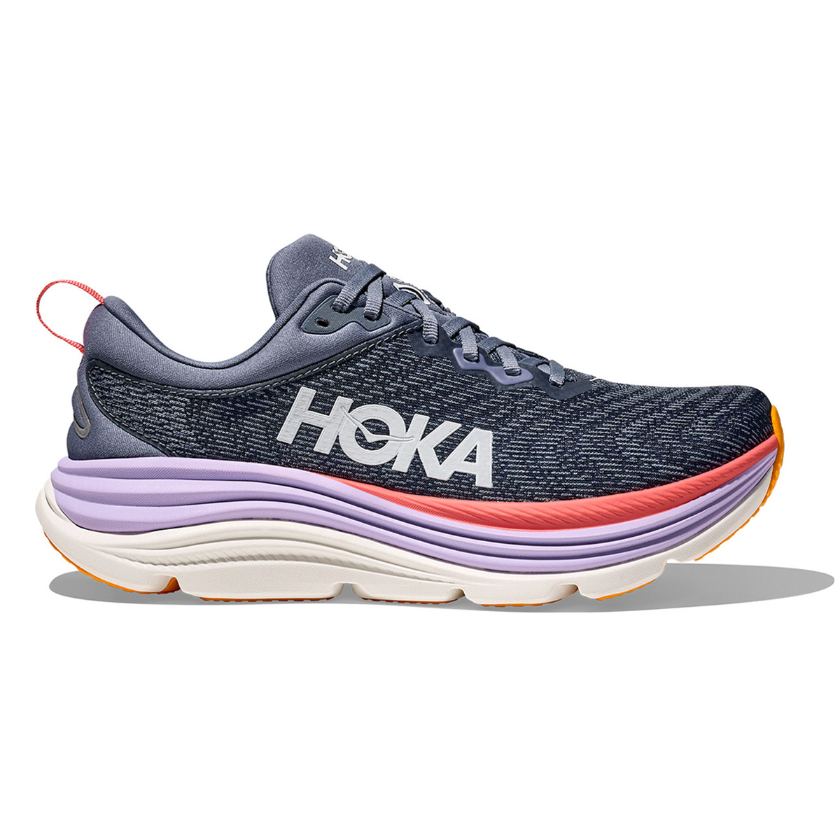 Hoka Gaviota 5 (Anchor/Grapefruit) dames, is een eersteklas stabiliteitsschoen met maximale demping. Een uitzonderlijke trainer voor langere afstanden.