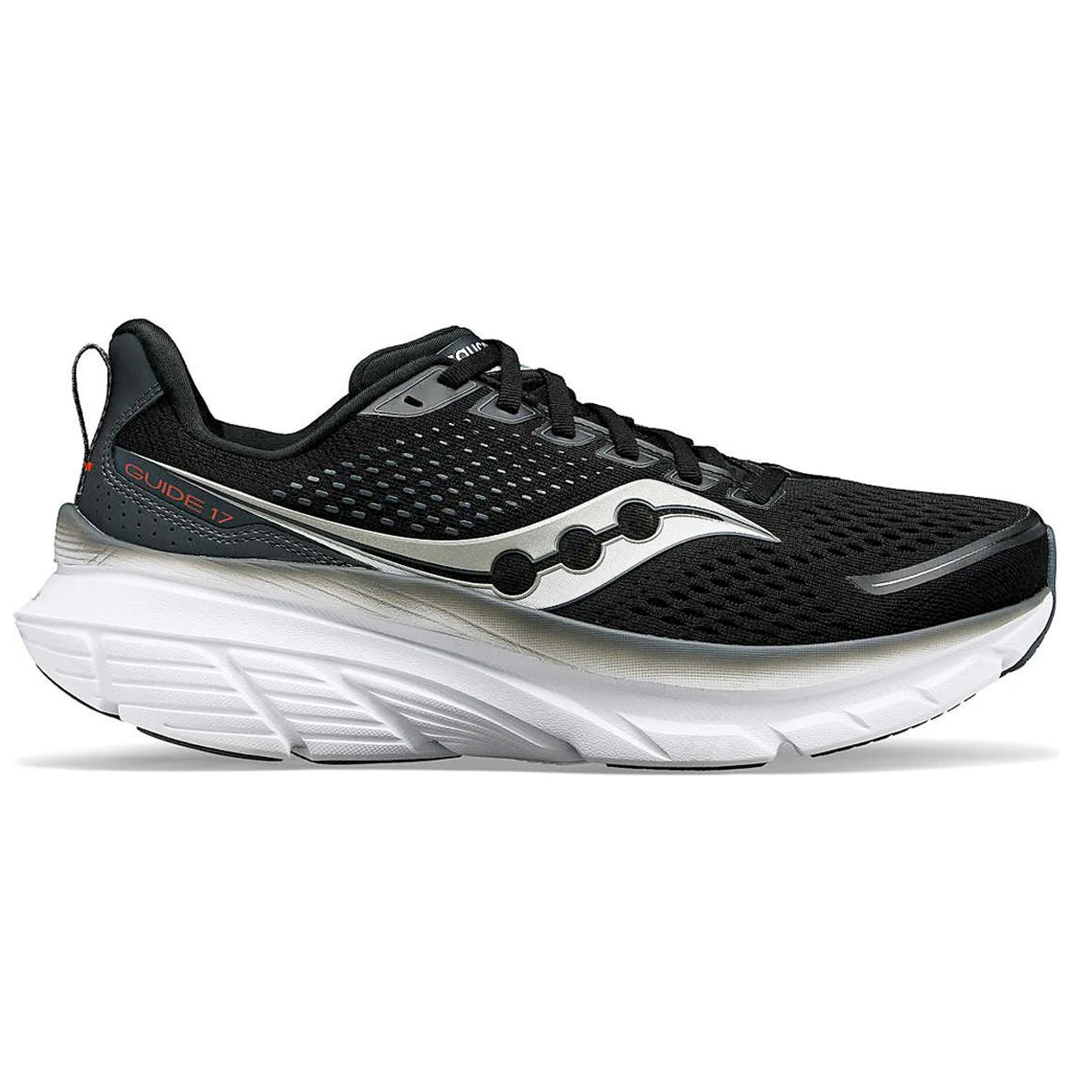 Saucony Guide 17 Black/Shadow heren is een corrigerende loopschoen voor licht overpronerende lopers of hardlopers die wat extra ondersteuning nodig hebben.