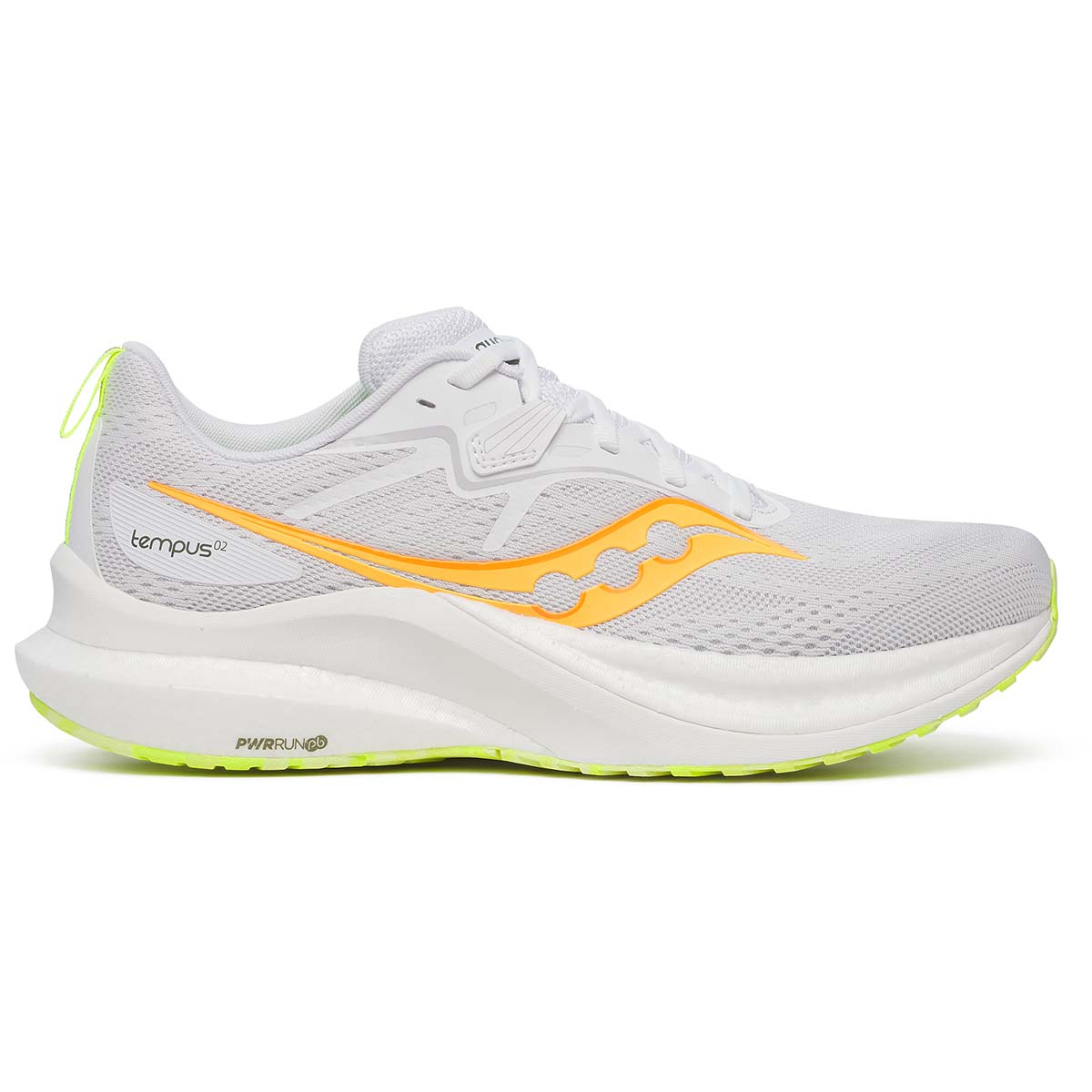 De Saucony Tempus 2 White/VO2 heren antipronatie hardloopschoen, een multifunctionele hardloopschoen die is gemaakt voor vele soorten hardloop trainingen. Interval, tempo’s, wedstrijden of lange duurlopen.