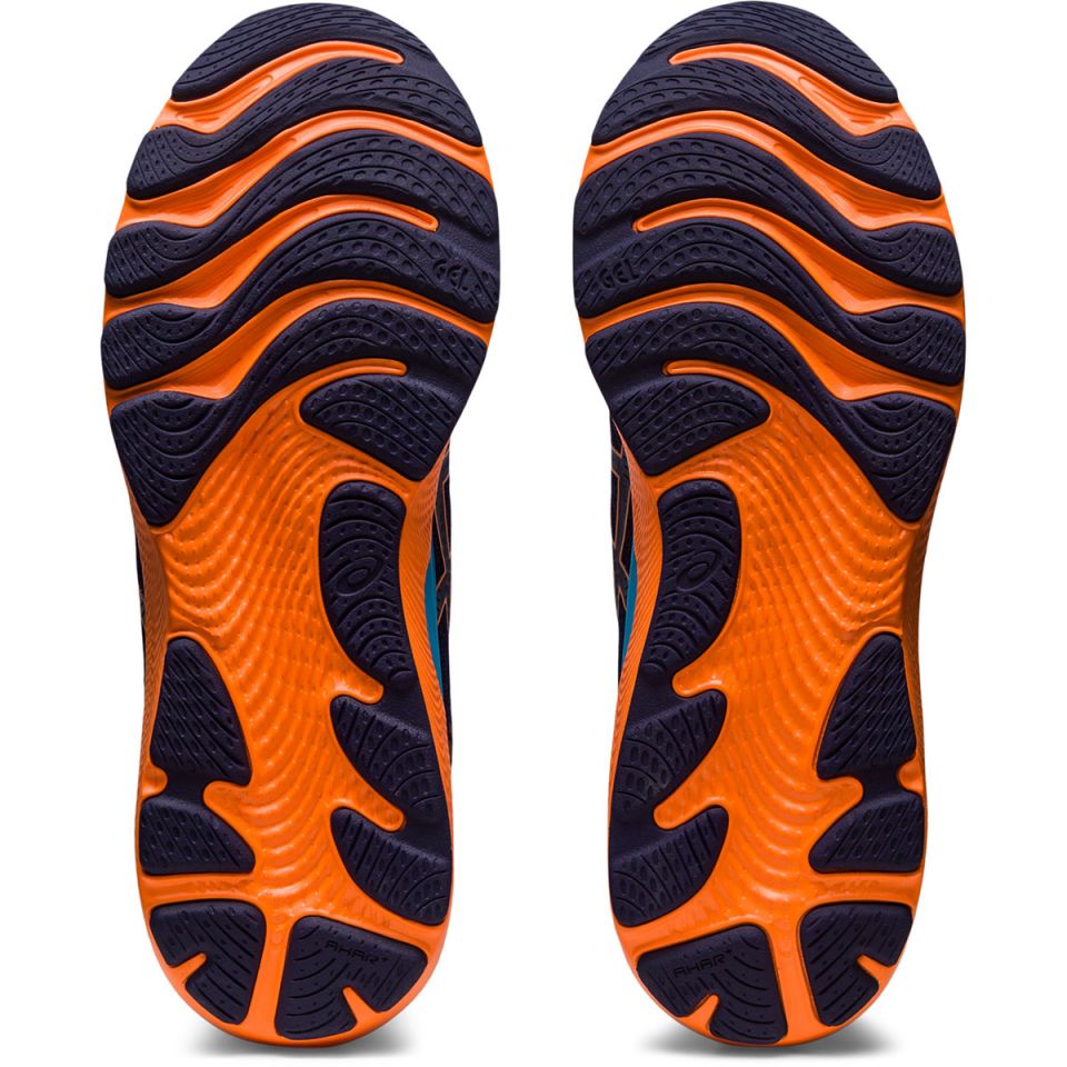 Asics Gel Cumulus 24 Indigo blue/sun peach heren. Deze Asics neutrale loopschoen voor heren heeft een groot landingsvlak die elke impact van hardlopen effectief opvangt.