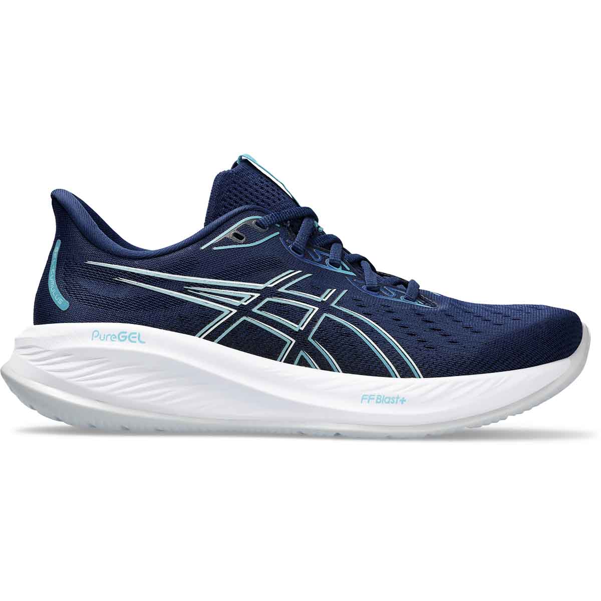 Asics Gel Cumulus 26 Blue expanse/Blue teal heren is een neutrale hardloopschoen die geschikt is voor vele soorten trainingen en de meest dempende en lichtste Gel-Cumulus tot nu toe. Nieuw ontworpen middenzool met FF BLAST PLUS gecombineerd met een FluidRide buitenzool voor zachte landingen en soepele overgang. Pure-Gel technologie voor meer zachtheid en minder impact op de gewrichten.