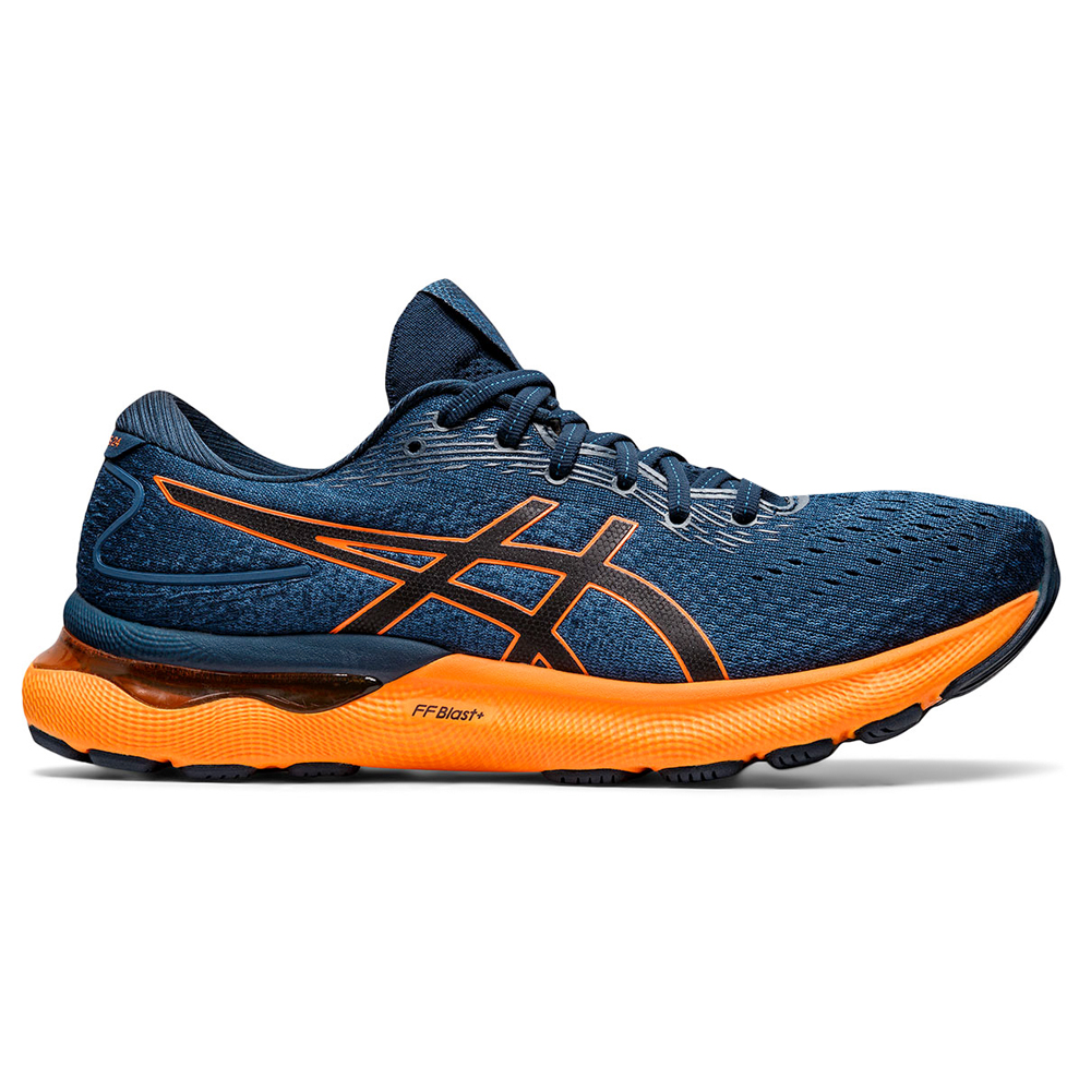 De ASICS Gel Nimbus 24 is volledig vernieuwd en voorzien van een volledige FFBlast+ tussenzool. Hiermee is de Nimbus 24 maar liefst 20 gram lichter geworden dan de Nimbus 23. Het FFBlast+ is 10% lichter dan FFBlast en heeft 60% meer bounce dan EVA