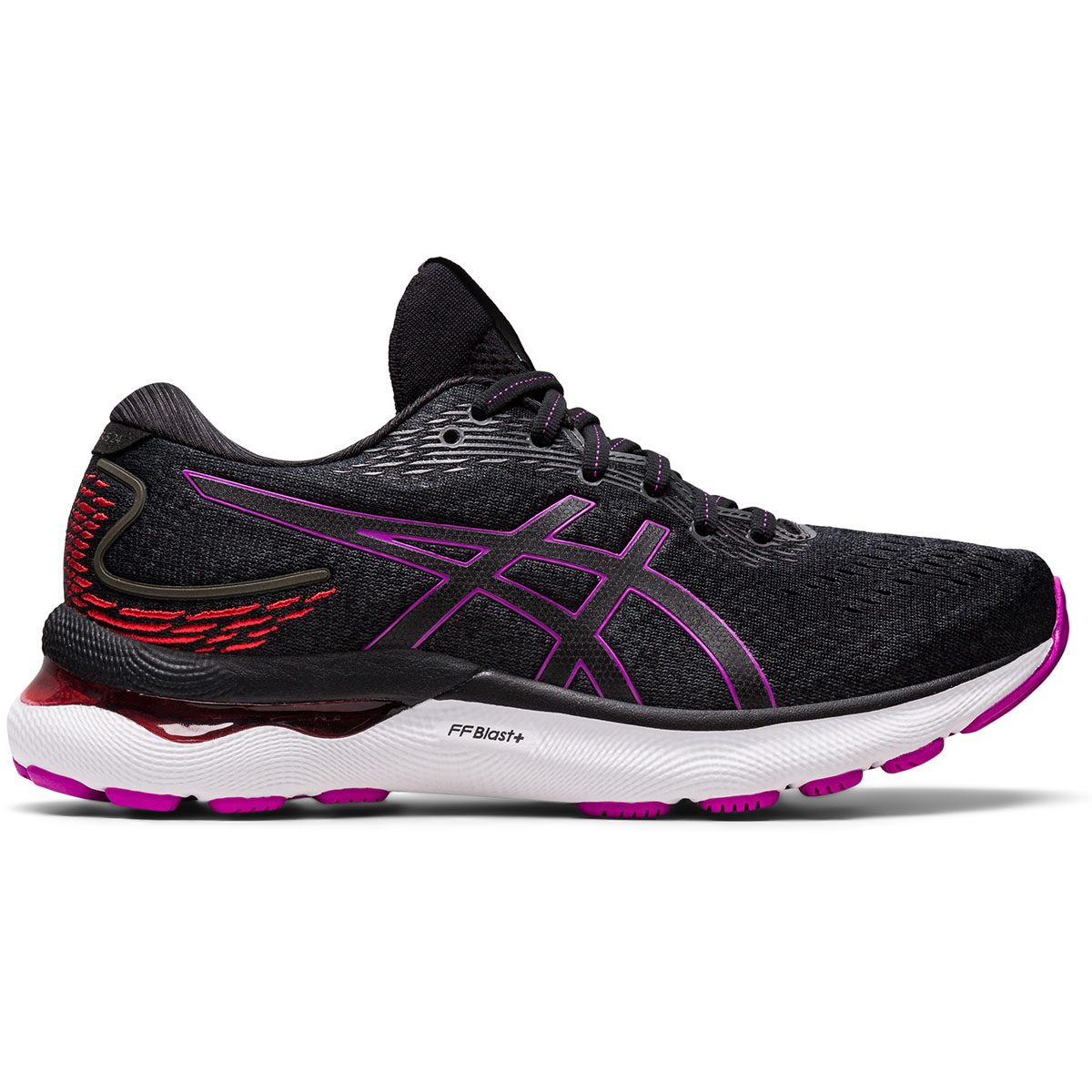 De ASICS GEL NIMBUS 24 black/orchid dames.