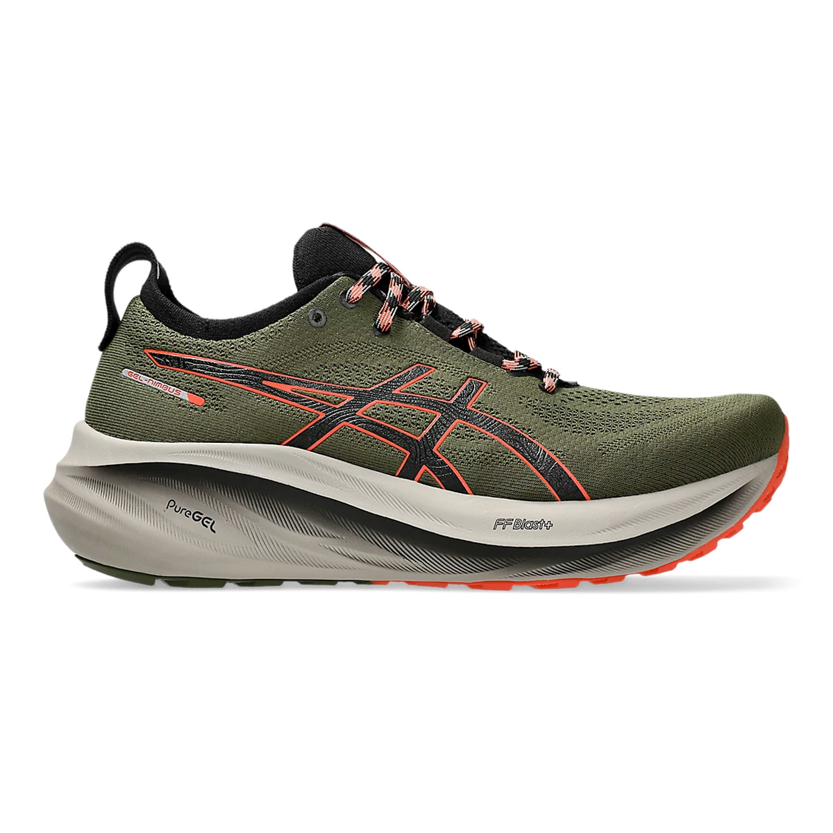 Asics Gel-Nimbus 26 TR Nature bathing/Red Snapper heren is een stabiele neutrale hardloopschoen voor heren met extreem veel demping en comfort.
