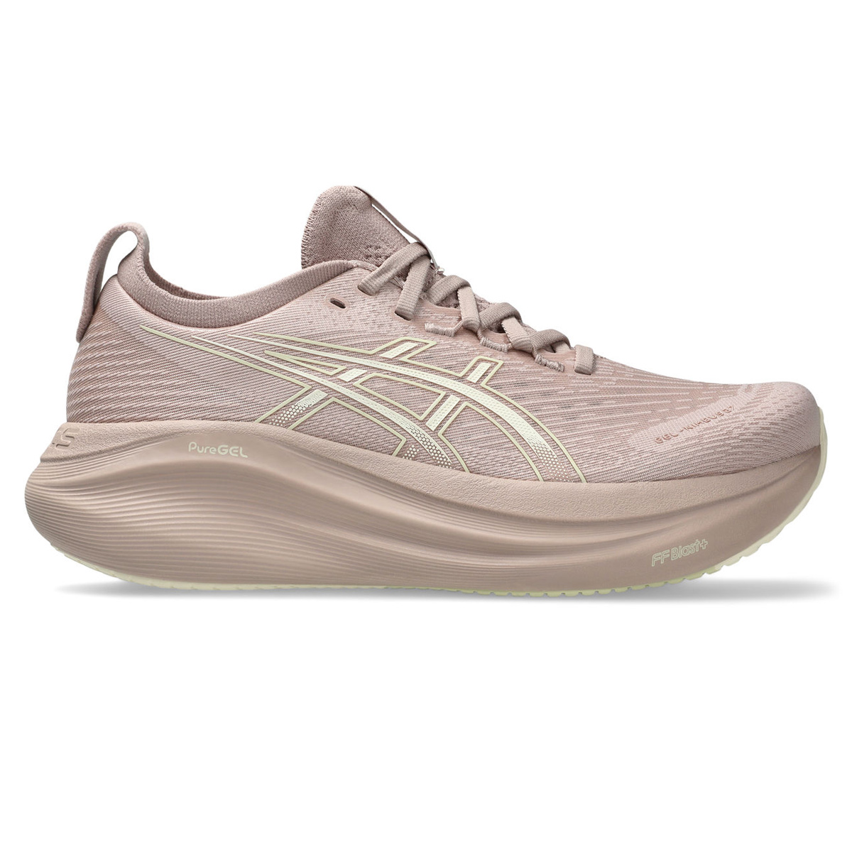 Asics Nimbus 27 (Fawn/Birch) dames de nieuwste evolutie op gebied van stabiele supercomfortabele neutrale hardloopschoen. Met 2 mm extra stackhoogte van FF BLAST™ PLUS ECO-demping om het luxe comfort naar hogere hoogte te tillen. Nieuw engineerd jacquard mesh bovenwerk voor betere ventilatie, voel comfort tijdens je run en vindt je rust.