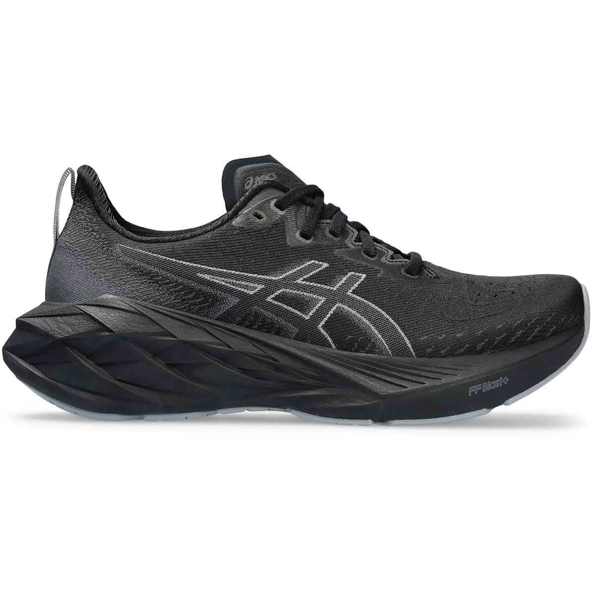 Asics Novablast 4 Black/Graphite Grey dames is een neutrale lichte hardloopschoen die geschikt is voor hardlopen op de weg en loop wedstrijden. Een loopschoen die helpt bij het vergroten van je prestaties en met een vernieuwd geometrisch design in de tussen en buitenzool voor een energiekere looppas.