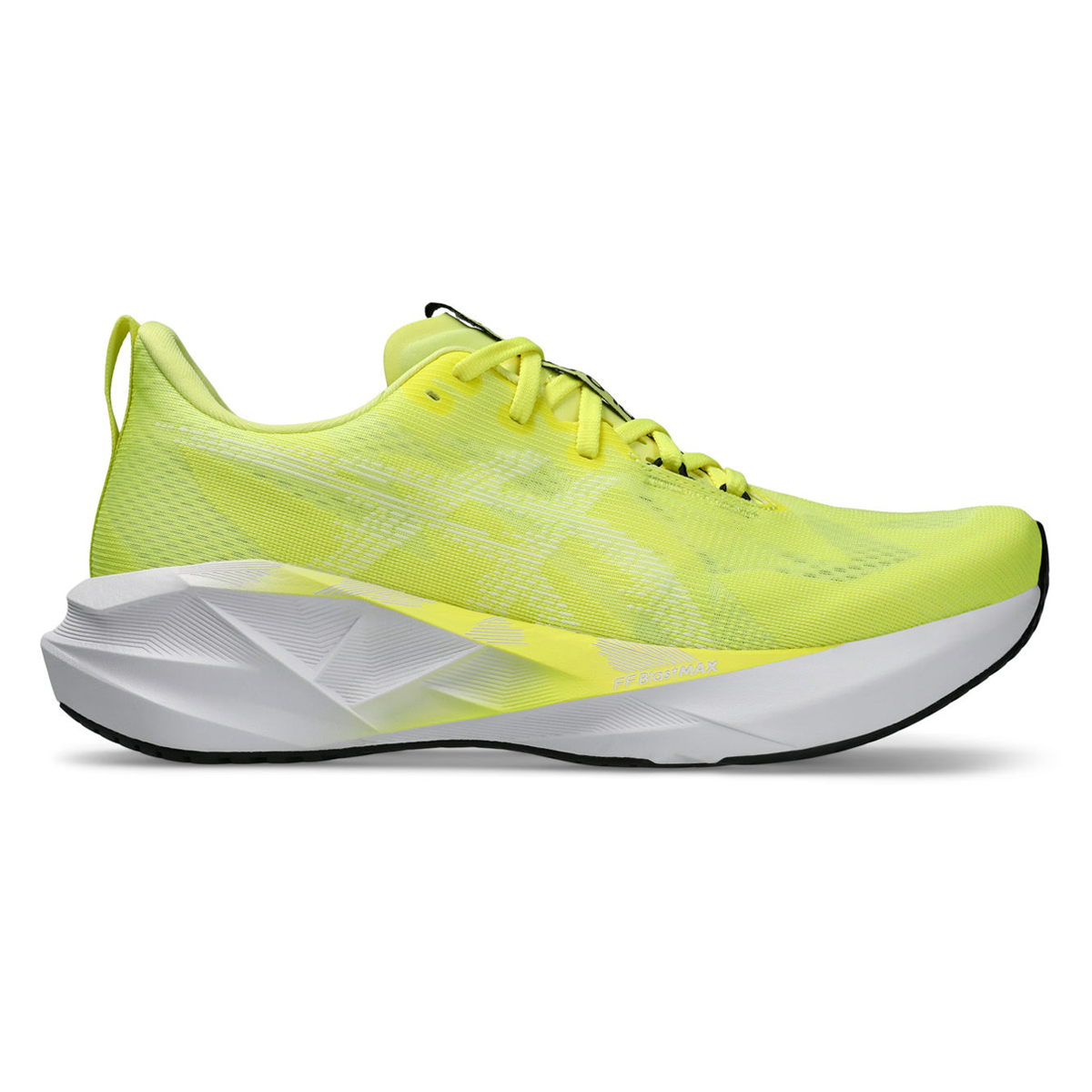 Asics Novablast 5 (Citron/White) heren is een neutrale lichte hardloopschoen met bijzonder hoge veerkracht en energieteruggave. Geschikt voor zowel rustige duurtrainingen als de snelle tempo's! Met FF BLAST MAX demping en het unieke geometrisch design in zowel tussenzool als buitenzool ervaar je een top combinatie tussen comfort en energieke passen.