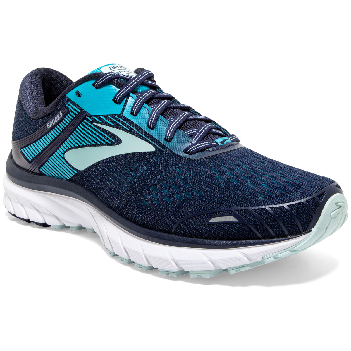 De Brooks Defyance 11 2A navy/teal/white heeft een extra smalle leest voor dames.