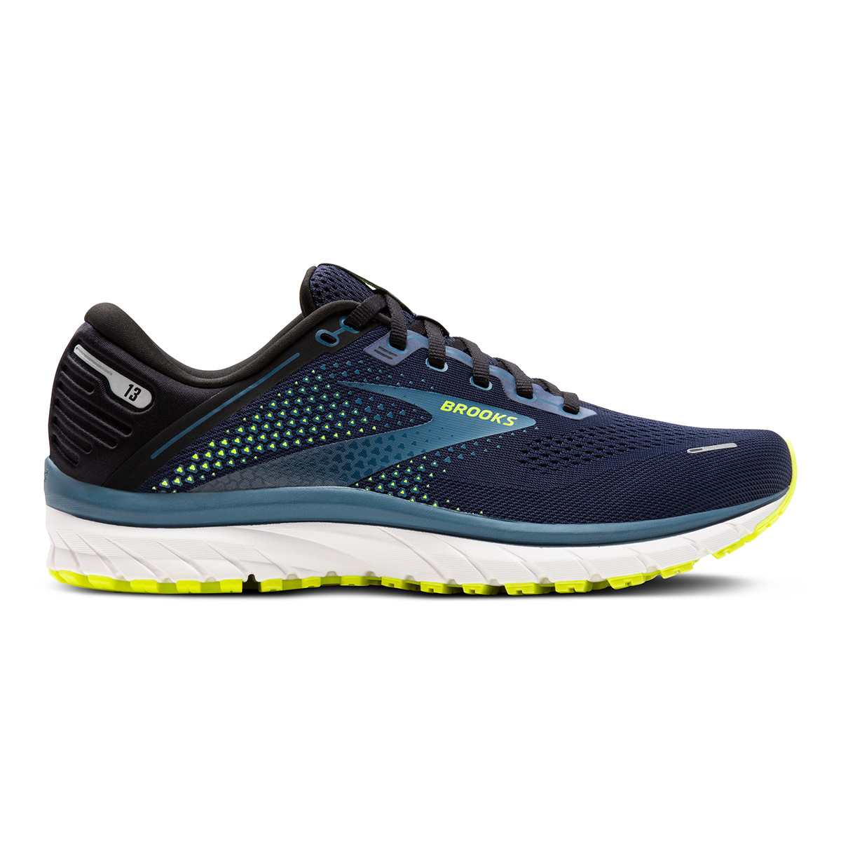 De Brooks Defyance 13 Peacoat/Blue Ashes/Nightlife heren runningshoe is dé neutrale tegenhanger van de bekende Brooks Adrenaline GTS. Het is een stevige neutrale hardloopschoen voor hardlopende of sportende heren die steun zoeken maar geen correcties willen.