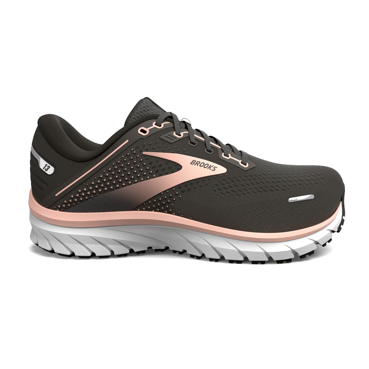 Deze Brooks Defyance 13 Black/Peach/White dames loopschoen is dé neutrale tegenhanger van de bekende Brooks Adrenaline GTS. Het is een stevige neutrale hardloopschoen voor hardlopende of sportende dames die steun zoeken maar geen correcties willen.