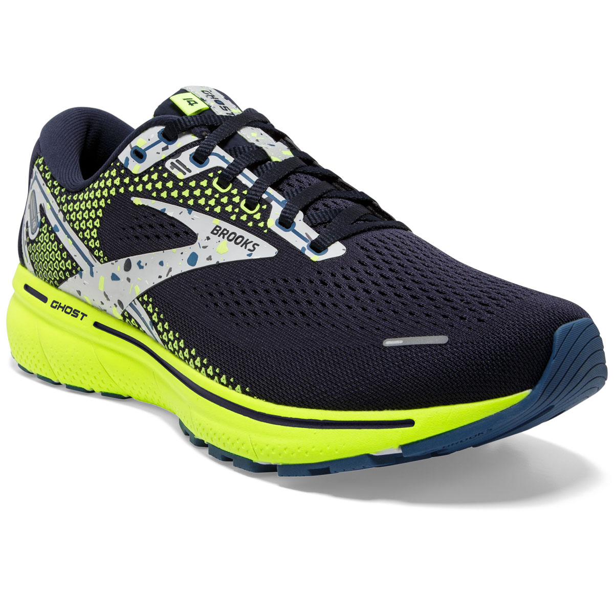 Brooks Ghost 14 navy/nightlife/oyster heren is de meest klimaat neutrale hardloopschoen van Brooks.