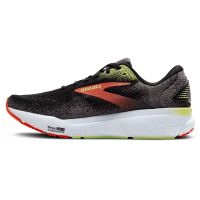 Brooks Ghost 16 Black/Mandarin Red/Green 2E heren is een allround neutrale hardloopschoen geschikt voor alle type lopers met brede voeten.