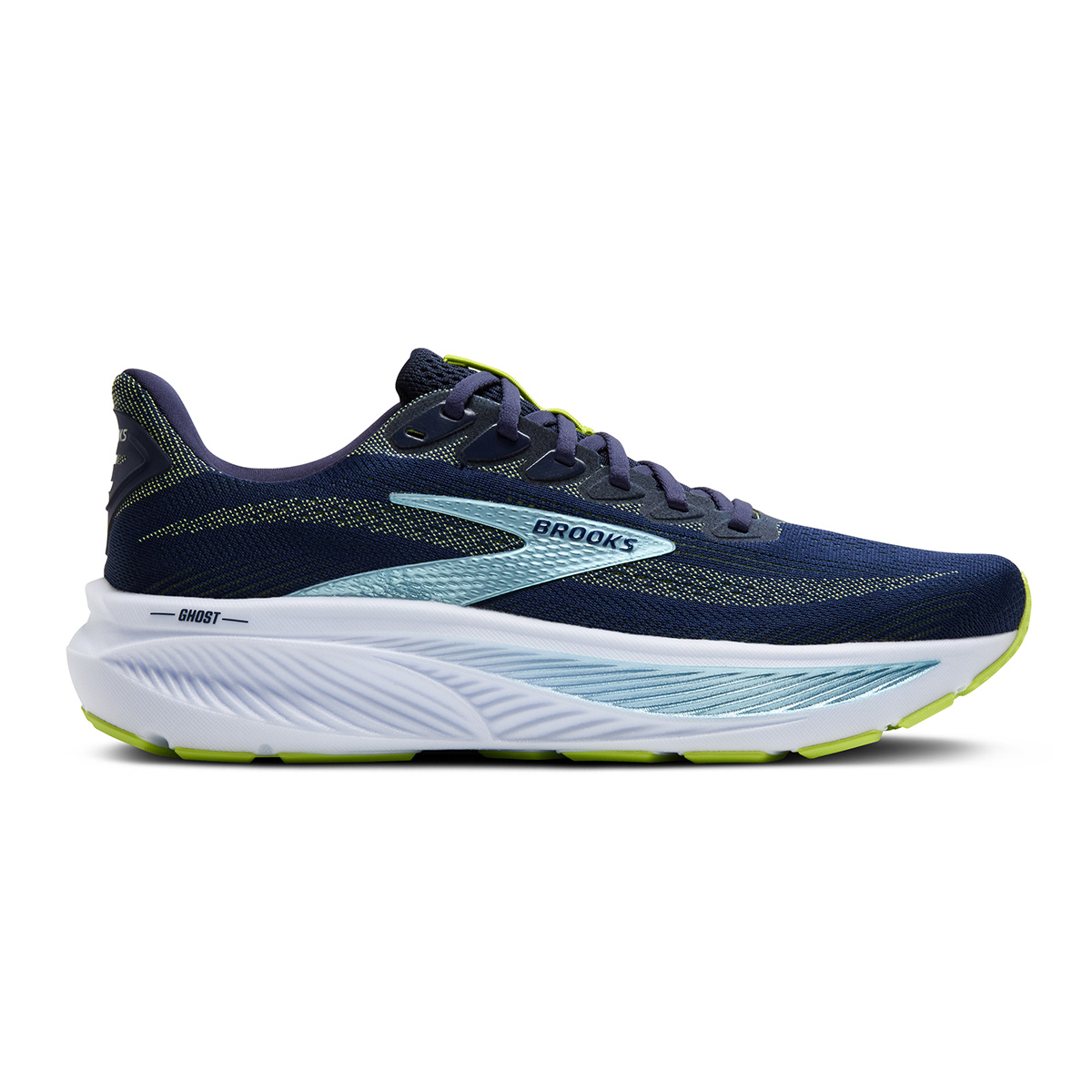 Brooks Ghost 17 NARROW B-Leest (Peacoat/Lime/Blue) heren is een populaire neutrale extra smalle loopschoen onder sporters. Met nu meer comfort is deze geschikt voor beginners en gemiddelde lopers die een allround hardloopschoen kunnen gebruiken voor hardlopen, wandelen en de sportschool.