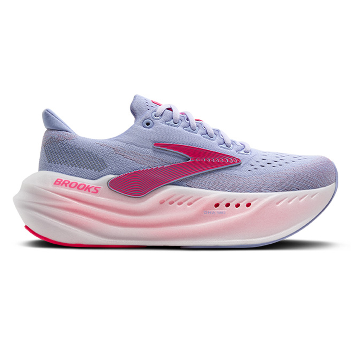 Brooks Glycerin Max (Blue heron/Diva Pink/White) dames is een neutrale hardloopschoen met maximale demping door de hoogte en dikte van de zool. Het nieuwe DNA Tuned foam materiaal in die dikkere zool ervaart men als extreem comfortabel en dempend, met genoeg responsiviteit als je wil kunnen versnellen.