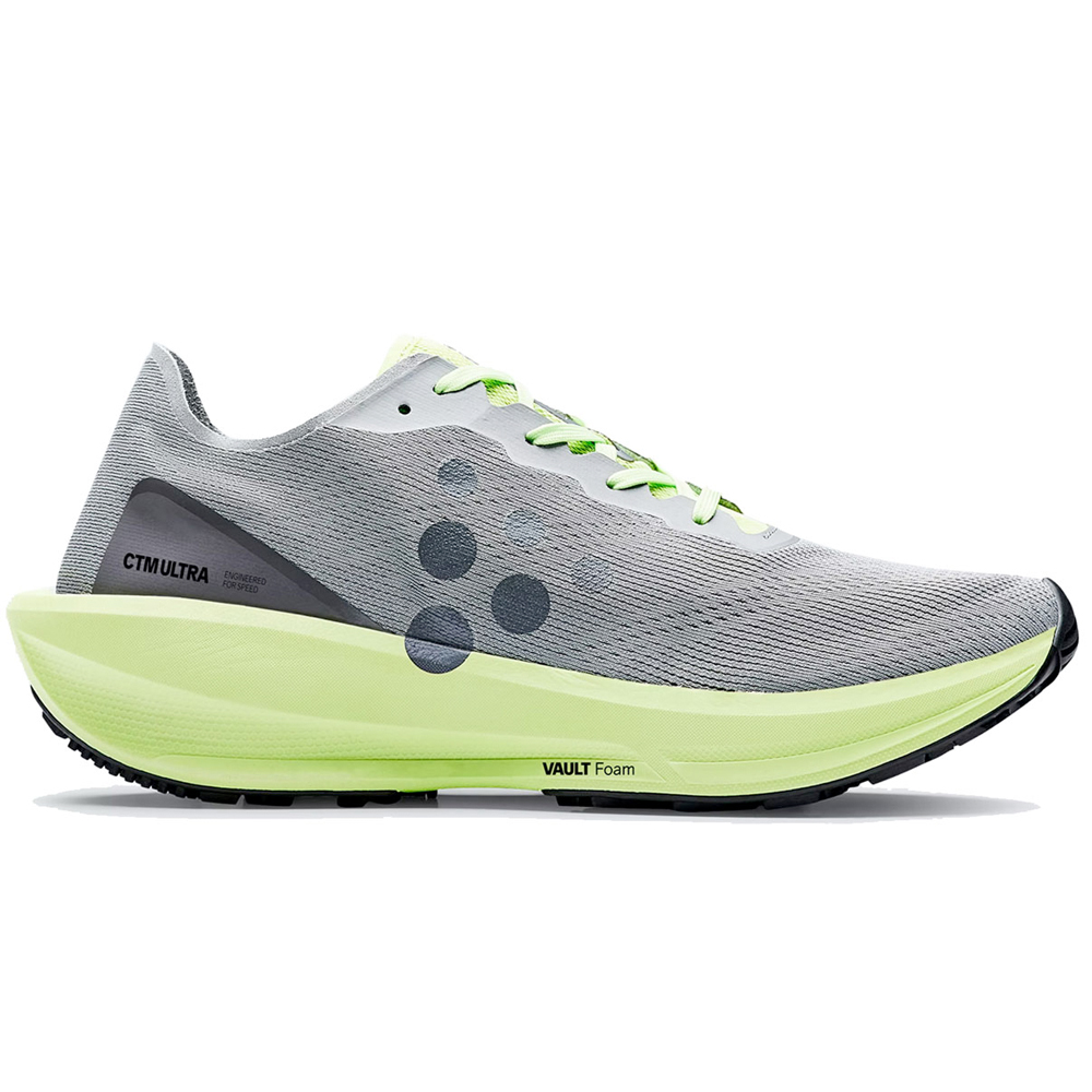 CTM Ultra Ash grijs met gele zool heren is een ultra dempende neutrale hardloopschoen van Craft. Met name geschikt voor hardlopers die lange afstanden of vaak en veel hardlopen. De performance en energie teruggave van de CTM ULTRA worden ondersteund door de Ud Foam tussenzool en het uit 1 stuk bestaande bovenwerk.