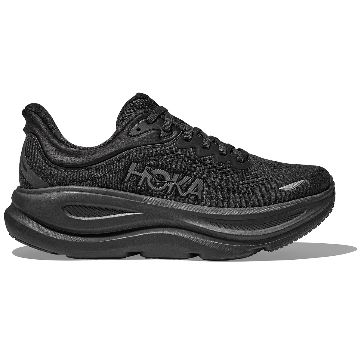 Hoka Bondi 9 dames Black/Black hardloopschoen is een van top tot teen vernieuwde allround neutrale loopschoen van HOKA met de hoogste stackhoogte ooit! Geniet van ultieme demping door de vernieuwde tussenzool voorzien van super-critival EVA-foam over de gehele lengte om die zachte veerkrachtige rit te geven waar de Hoka Bondi bekend om staat.
