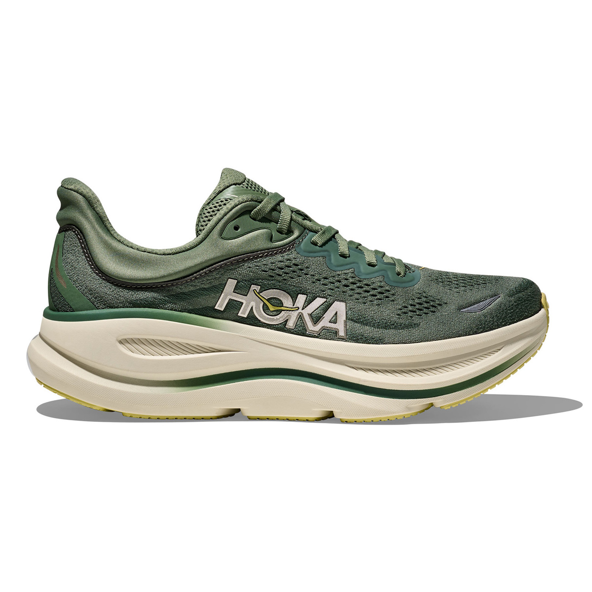 Hoka Bondi 9 hardloopschoen (Sea Moss/White) heren is een van top tot teen vernieuwde allround neutrale loopschoen van HOKA met de hoogste stackhoogte ooit! Geniet van ultieme demping door de vernieuwde tussenzool voorzien van super-critival EVA-foam over de gehele lengte om die zachte veerkrachtige rit te geven waar de Hoka Bondi bekend om staat.