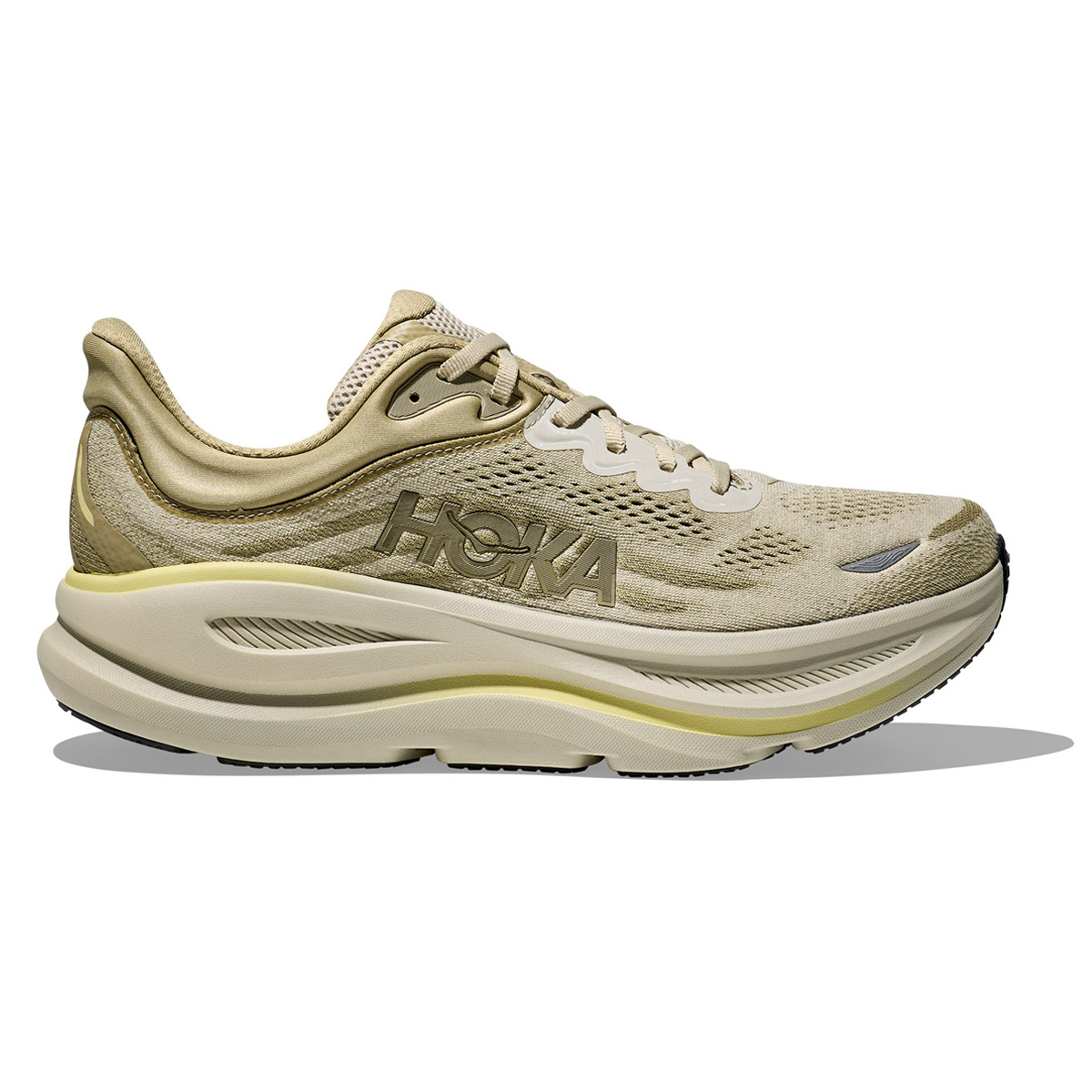 Hoka Bondi 9 hardloopschoen (Grassland/Oyster Mushroom) heren is een van top tot teen vernieuwde allround neutrale loopschoen van HOKA met de hoogste stackhoogte ooit! Geniet van ultieme demping door de vernieuwde tussenzool voorzien van super-critival EVA-foam over de gehele lengte om die zachte veerkrachtige rit te geven waar de Hoka Bondi bekend om staat.