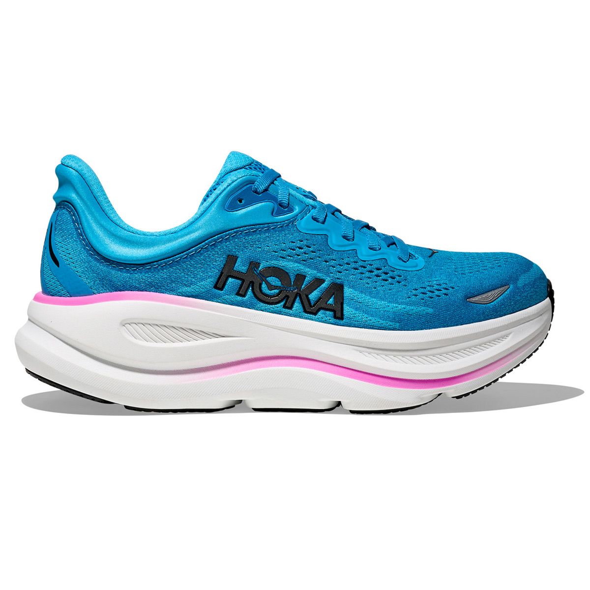 De HOKA Bondi 9 is verbeterd met een vernieuwde tussenzool van super kritisch EVA schuim en 2mm hogere stackhoogte. De 3D gevormde hielkraag zorgt samen met het bovenwerk van technisch gaas voor een prettige pasvorm. De voorvoet is iets smaller waarbij de midvoet juist wat breder is geworden.