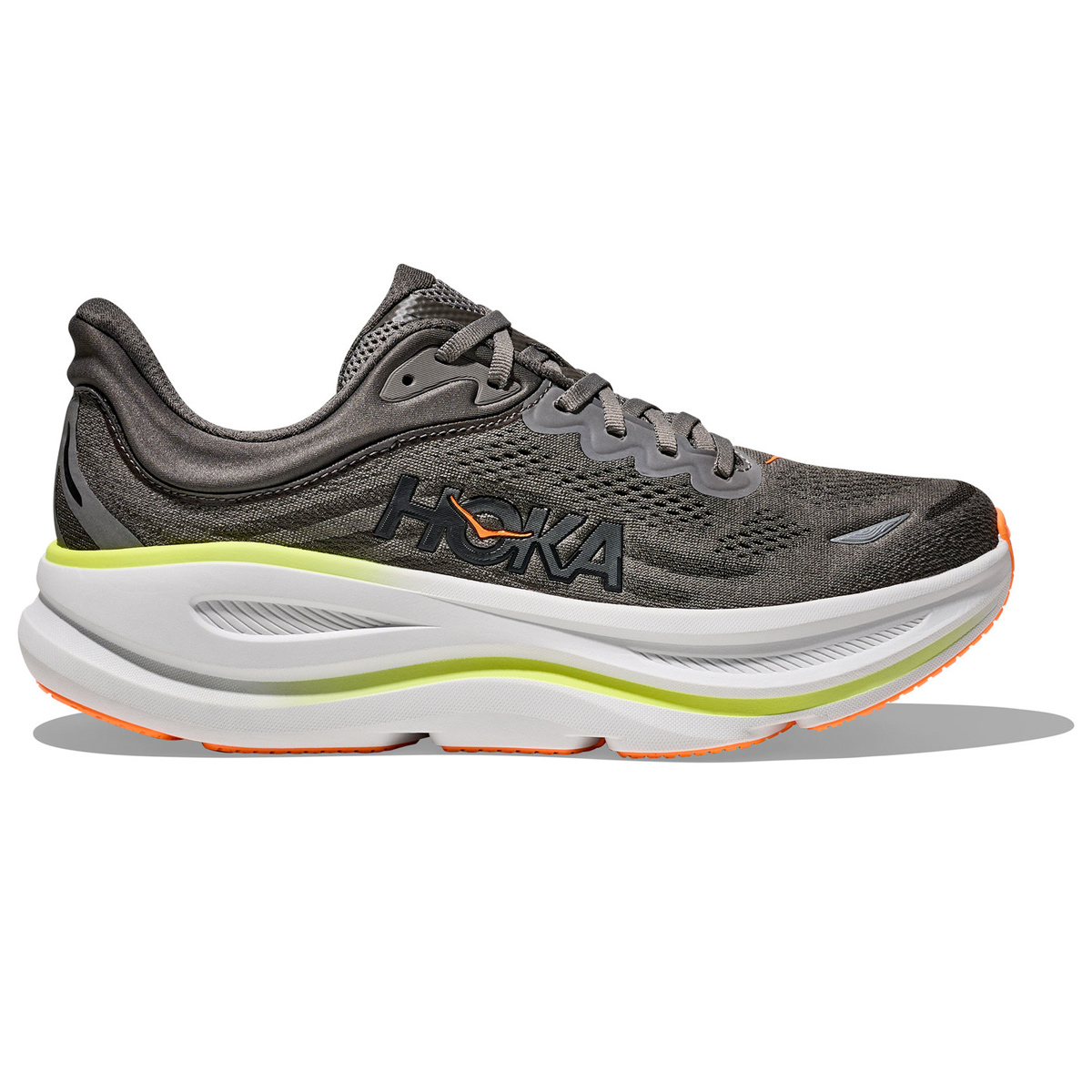 Hoka Bondi 9 hardloopschoen (Asphalt Grey/Gravel) heren is een van top tot teen vernieuwde allround neutrale loopschoen van HOKA met de hoogste stackhoogte ooit! Geniet van ultieme demping door de vernieuwde tussenzool voorzien van super-critival EVA-foam over de gehele lengte om die zachte veerkrachtige rit te geven waar de Hoka Bondi bekend om staat.