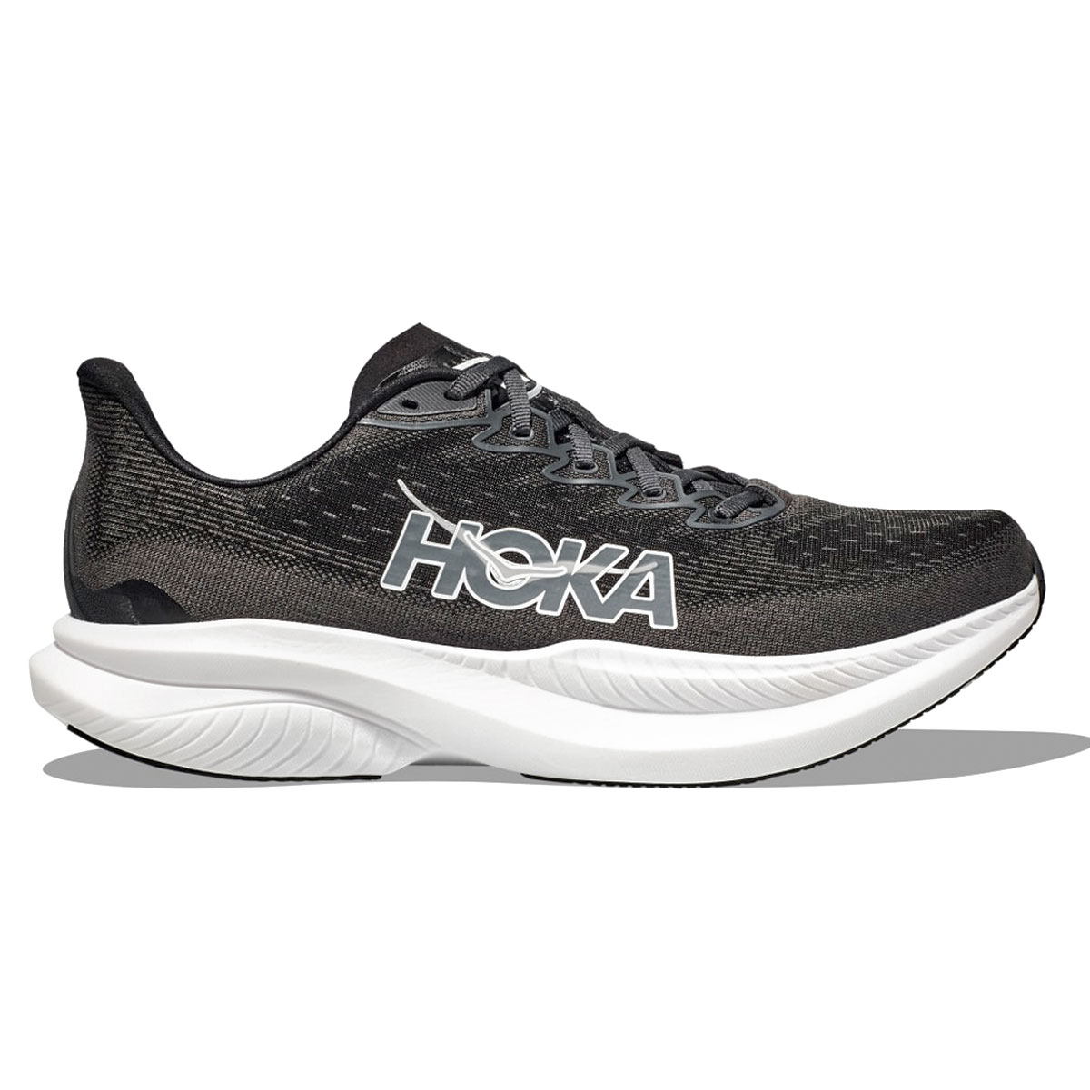 HOKA Mach 6 Black/White heren is een dynamische en lichte neutrale hardloopschoen met lage hieldrop die geschikt is voor tempo's en de snellere duurlopen. Nu met een nieuwe middenzool van Super Critical-schuim die voor extra bounce zorgt.