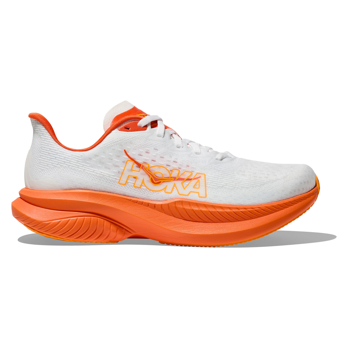 HOKA Mach 6 (FLV Wit) heren is een dynamische en lichte neutrale hardloopschoen met lage hieldrop die geschikt is voor tempo's en de snellere duurlopen. Nu met een nieuwe middenzool van Super Critical-schuim die voor extra bounce zorgt.