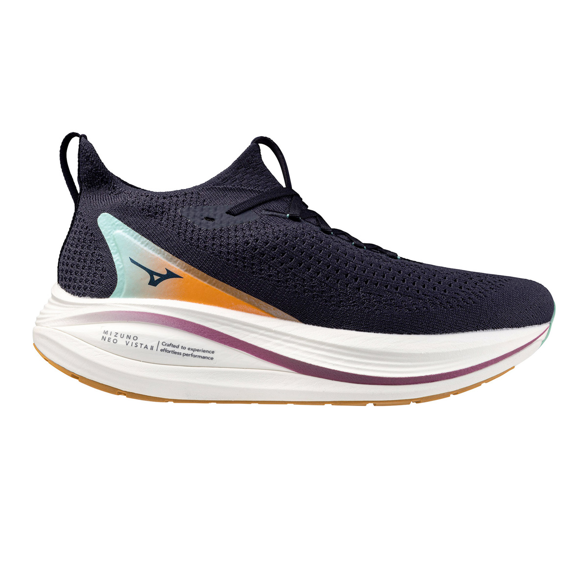 Mizuno Neo Vista 2 ( Dark Navy/Orange/Mint Green) heren hardloopschoenen zijn ontworpen om moeiteloos prestaties te leveren. Of je nu lange comfortabele duurlopen wil doen of wat meer tempo op de weg wil maken. Dit is een allround toplevel neutrale hardloopschoen met kunststof plaat en zachte demping die jou helpt waar je het nodig hebt. Een echte supertrainer!