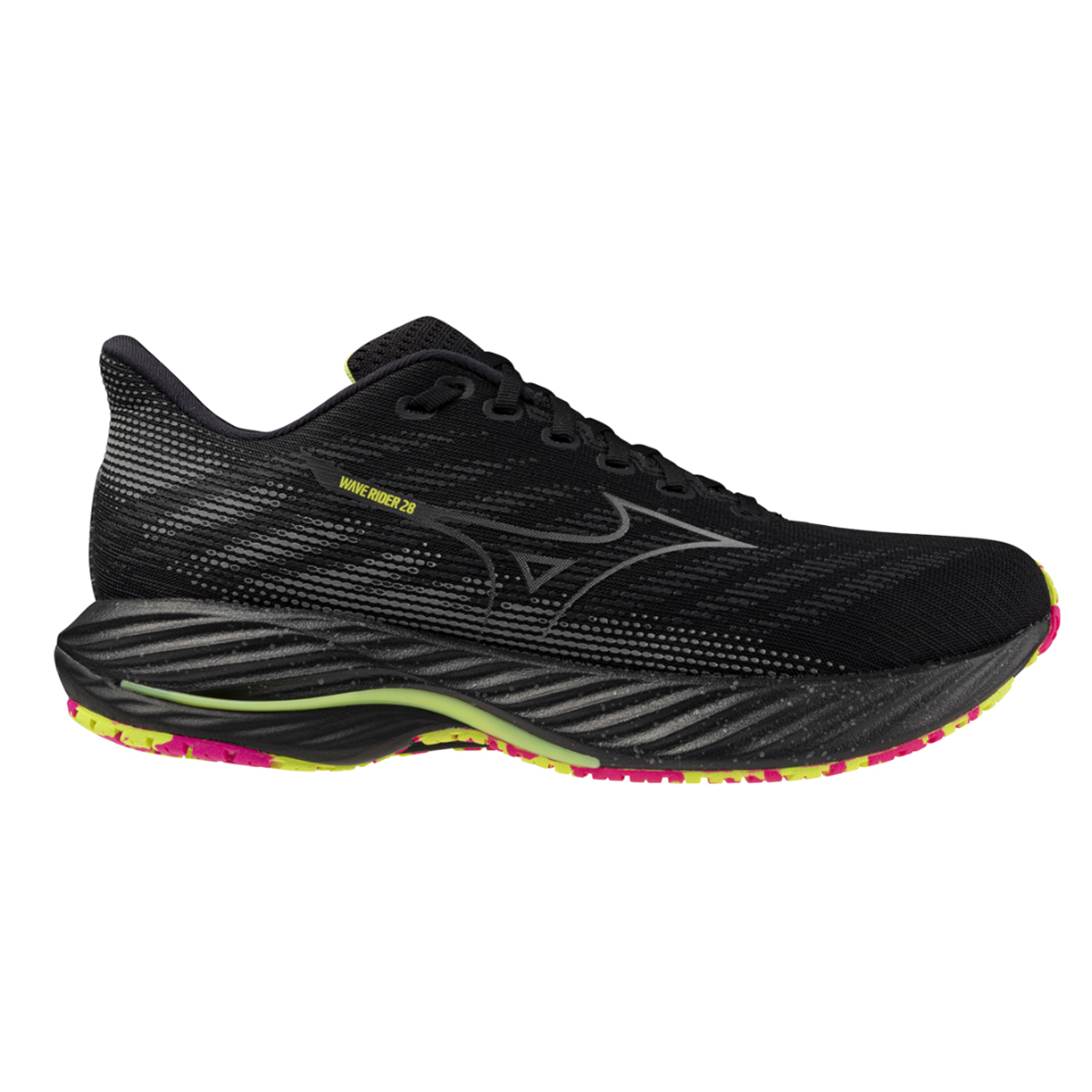 Mizuno Wave Rider 28 Black/Silver/Sunny Lime dames is een veelzijdige neutrale hardloopschoen die de perfecte combinatie heeft tussen comfort en stabiliteit voor elke soort run. Nu vernieuwd met MIZUNO ENERZY NXT, bovenop het vertrouwde MIZUNO ENERZY en MIZUNO ENERZY FOAM voor nog meer demping veerkracht en extra energieteruggave bij elke stap.