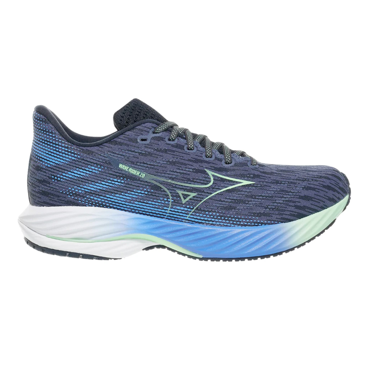 Mizuno Wave Rider 28 Vintage Indigo/Neo Mint heren is een veelzijdige neutrale hardloopschoen die de perfecte combinatie heeft tussen comfort en stabiliteit voor elke soort run. Nu vernieuwd met MIZUNO ENERZY NXT, bovenop het vertrouwde MIZUNO ENERZY en MIZUNO ENERZY FOAM voor nog meer demping veerkracht en extra energieteruggave bij elke stap.