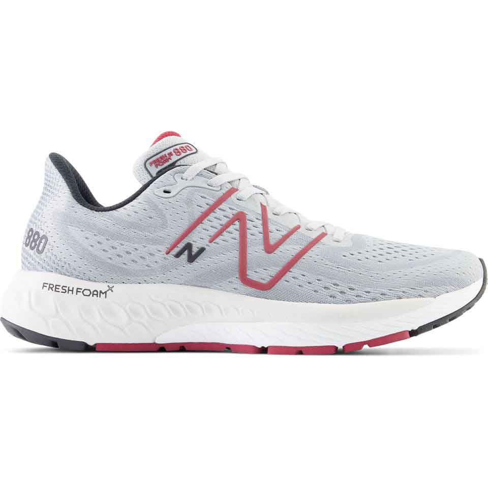 De New Balance M880 V13 Nb Aluminum grey with crimson and black heren. Waar functionaliteit en prestatie elkaar ontmoeten. Deze doorontwikkelde neutrale hardloopschoen is gemaakt voor de hardloper die opzoek is naar stabiliteit en comfort. Compleet met strakke lijnen en eenvoudige stijl zorgt de schoen voor een moderne look.