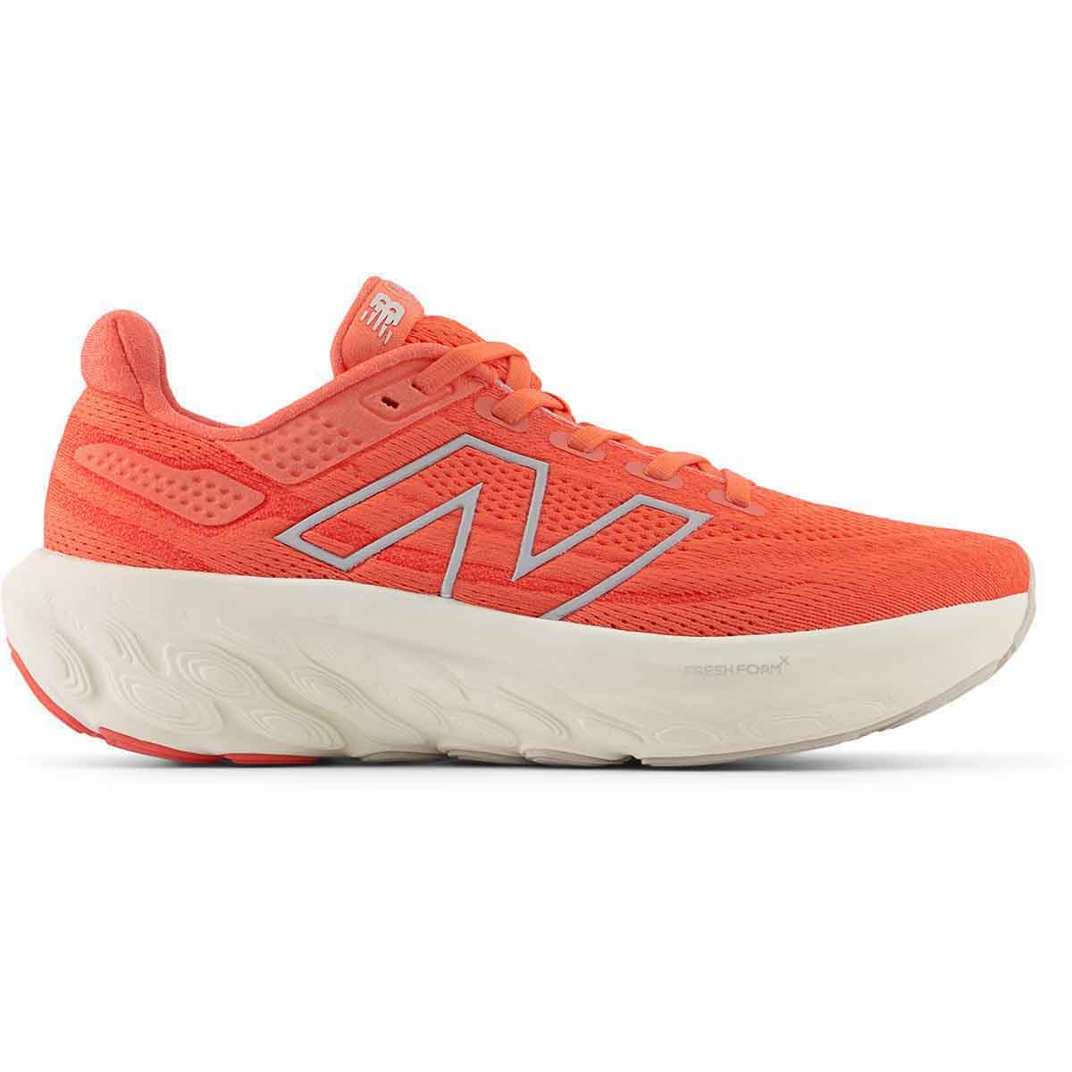 New Balance W1080 V13 Gulf red met linen en silver metallic is een toplevel neutrale hardloopschoen met superdempend vermogen.