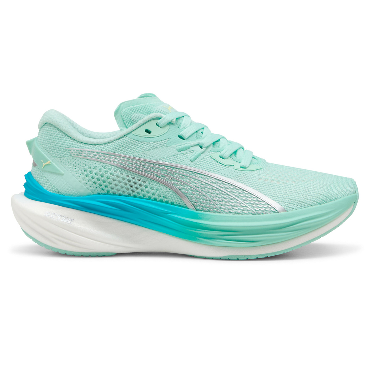 Puma Deviate NITRO™ 3 (Mint Melt/Speed Bue) dames is een neutrale carbonplated hardloopschoen geschikt voor HYROX en hardlopen op de weg. Met een goede energieteruggave geschikt voor al die verschillende snelheden bij hardlopen en de korte runs bij HYROX. Tevens extra goede grip bij afzetsprongen en HYROX oefeningen.